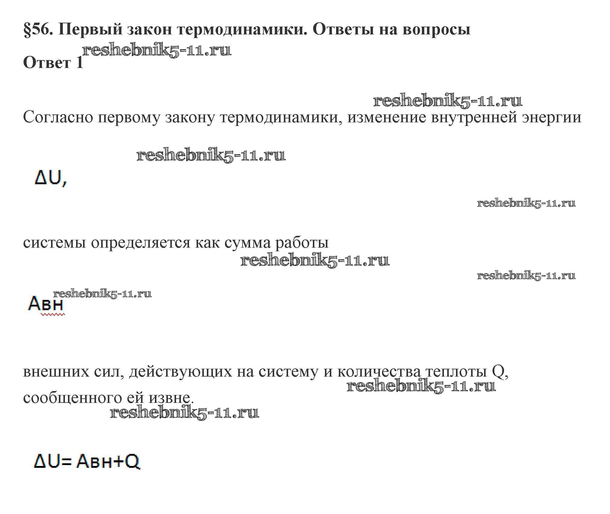 Готовая домашняя работа с ответами по Физике за 10 класс Касьянов Учебник Дрофа 2018 ФГОС - 56. Первый закон термодинамики 1