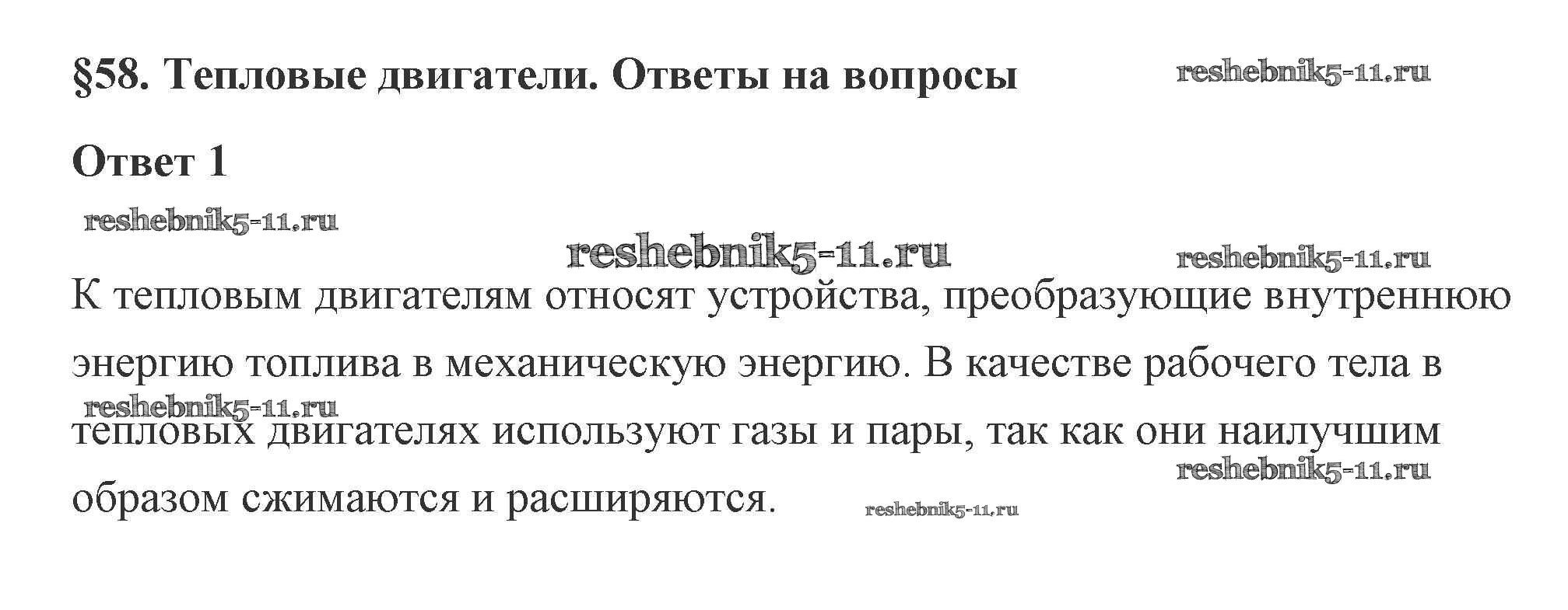 Готовая домашняя работа с ответами по Физике за 10 класс Касьянов Учебник Дрофа 2018 ФГОС - 58. Тепловые двигатели 1