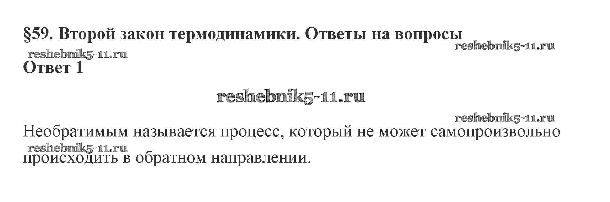 Готовая домашняя работа с ответами по Физике за 10 класс Касьянов Учебник Дрофа 2018 ФГОС - 59. Второй закон термодинамики 1
