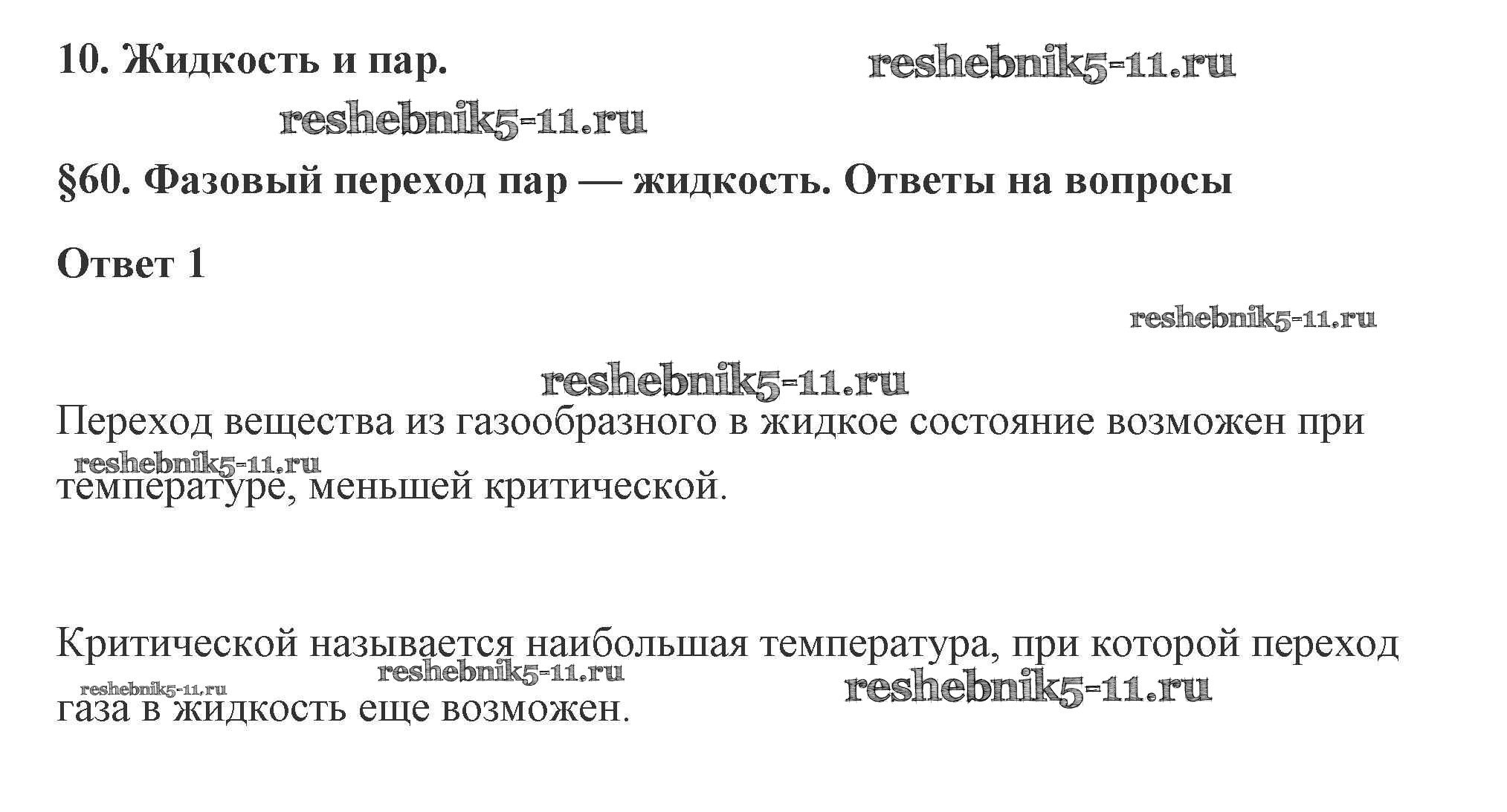 Готовая домашняя работа с ответами по Физике за 10 класс Касьянов Учебник Дрофа 2018 ФГОС - 60. Фазовый переход пар — жидкость 1