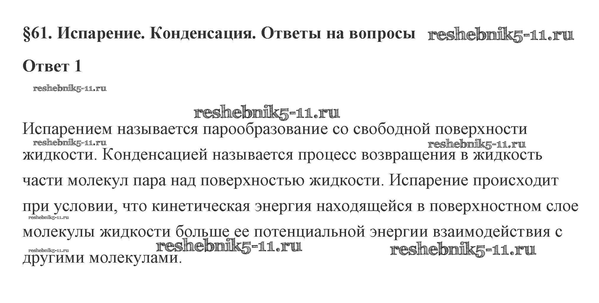 Готовая домашняя работа с ответами по Физике за 10 класс Касьянов Учебник Дрофа 2018 ФГОС - 61. Испарение. Конденсация 1