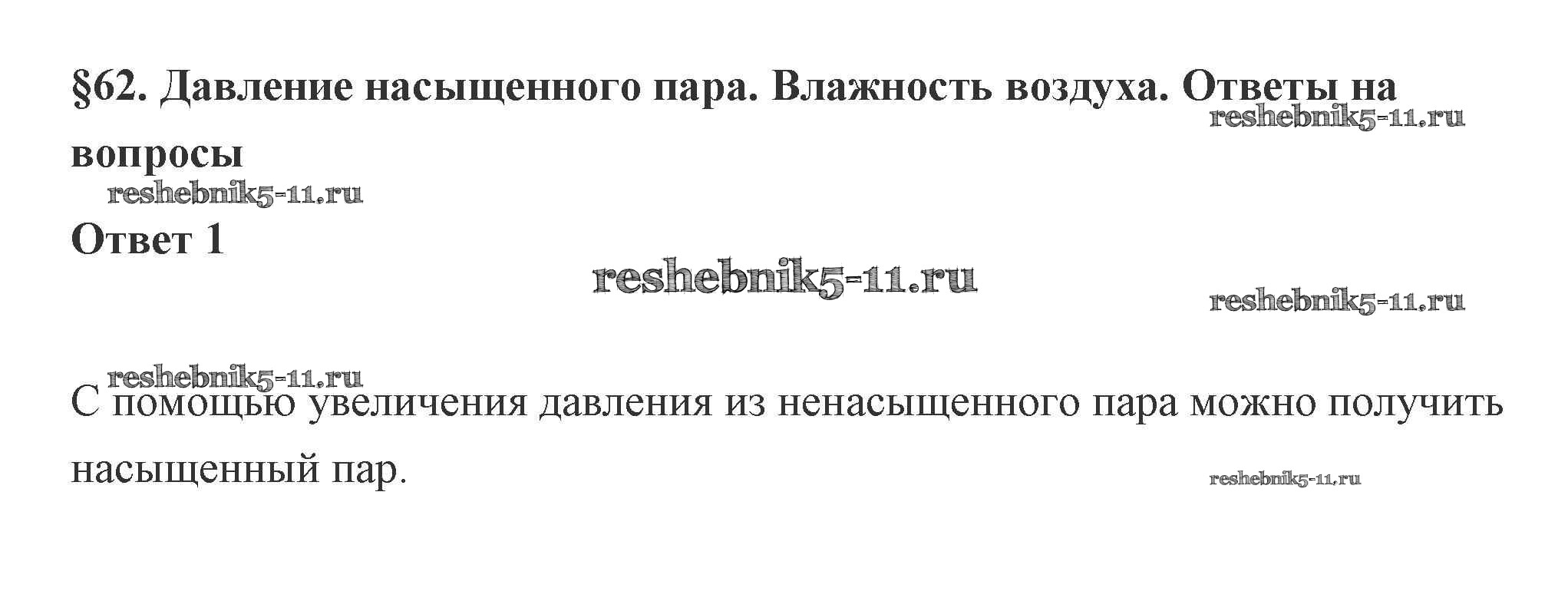 Готовая домашняя работа с ответами по Физике за 10 класс Касьянов Учебник Дрофа 2018 ФГОС - 62. Давление насыщенного пара 1