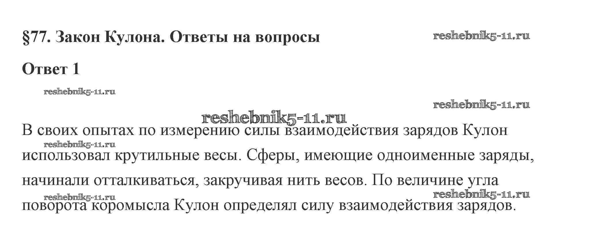 Готовая домашняя работа с ответами по Физике за 10 класс Касьянов Учебник Дрофа 2018 ФГОС - 77. Закон Кулона 1