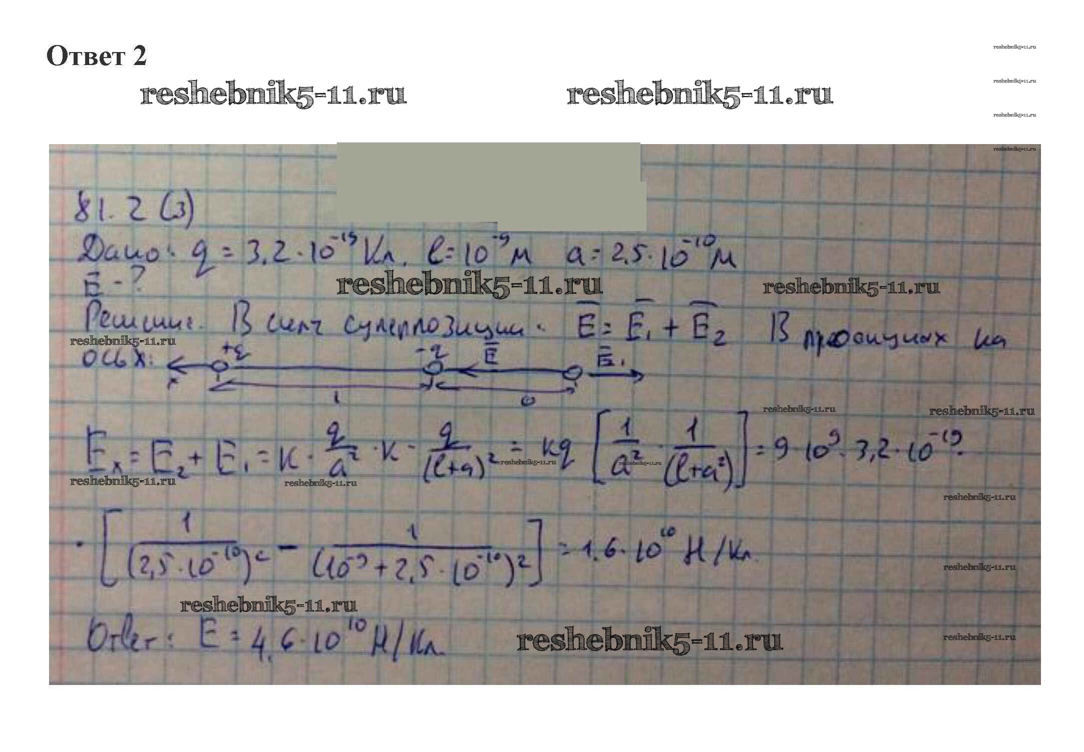 Готовая домашняя работа с ответами по Физике за 10 класс Касьянов Учебник Дрофа 2018 ФГОС - 81. Принцип суперпозиции электростатических полей 2