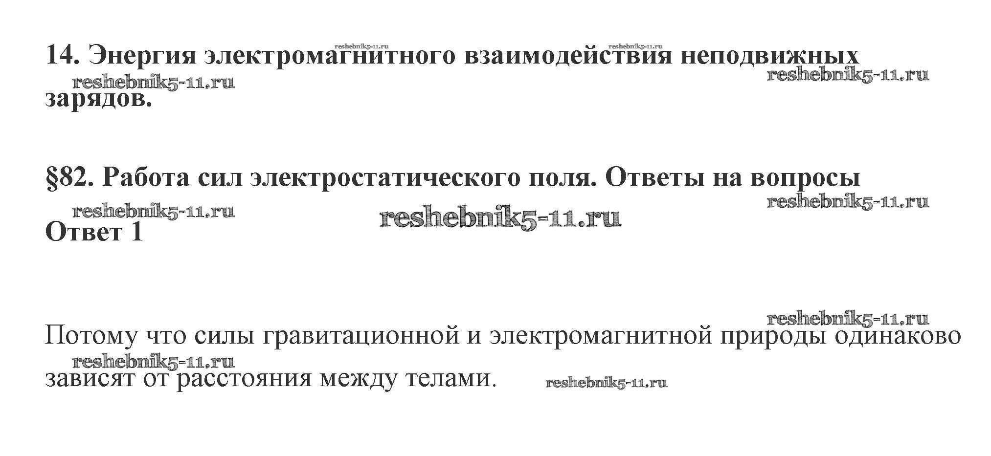 Готовая домашняя работа с ответами по Физике за 10 класс Касьянов Учебник Дрофа 2018 ФГОС - 82. Работа сил электростатического поля 1