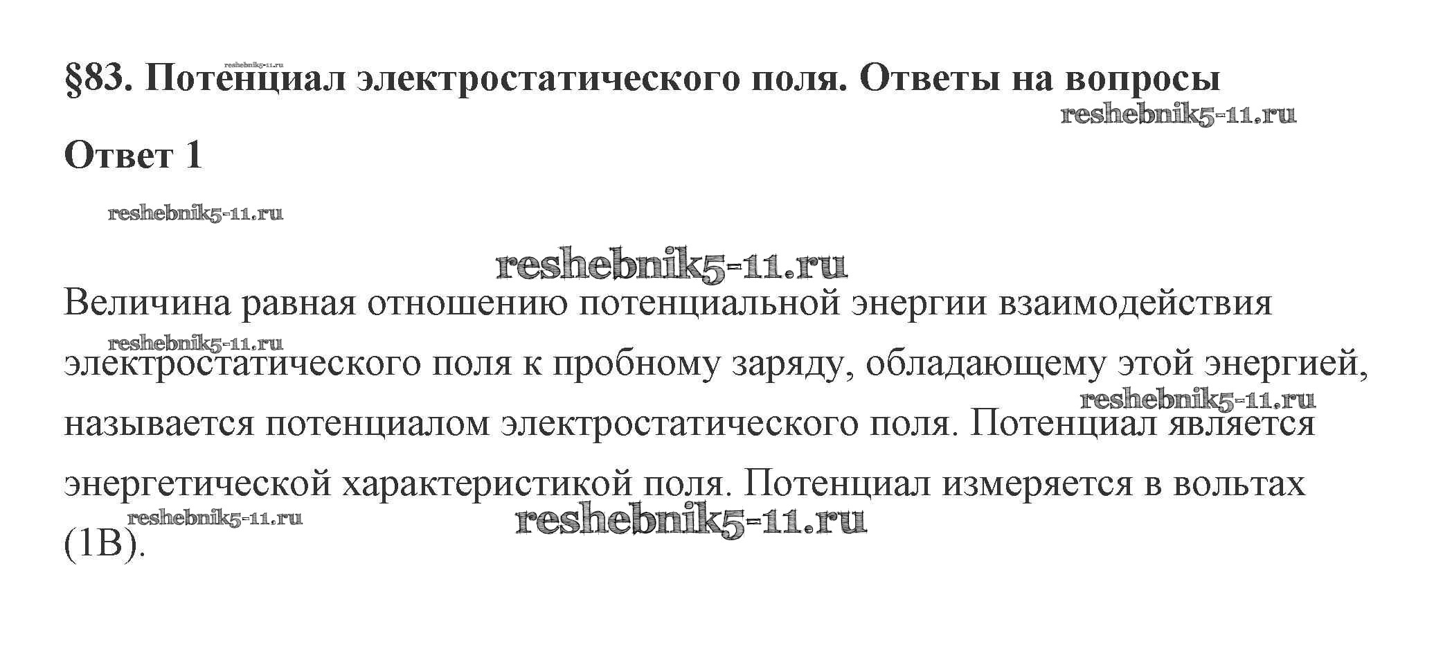 Готовая домашняя работа с ответами по Физике за 10 класс Касьянов Учебник Дрофа 2018 ФГОС - 83. Потенциал электростатического поля 1