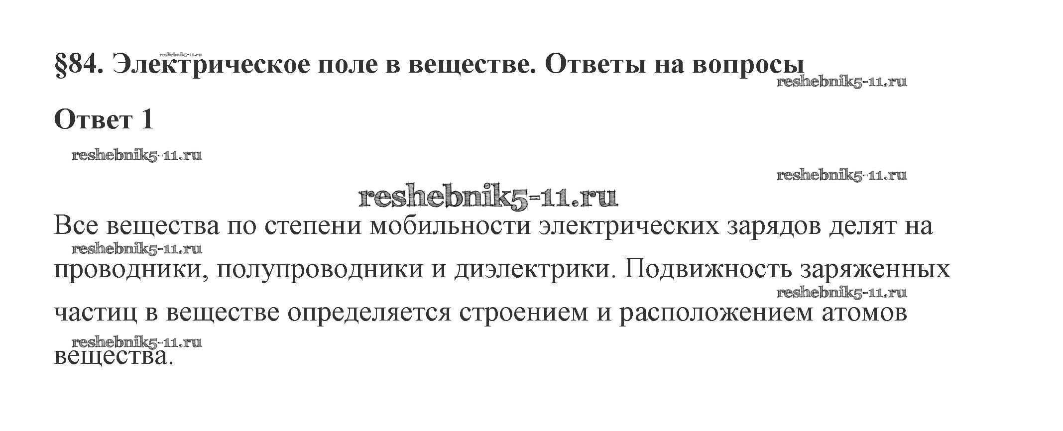 Готовая домашняя работа с ответами по Физике за 10 класс Касьянов Учебник Дрофа 2018 ФГОС - 84. Электрическое поле в веществе 1