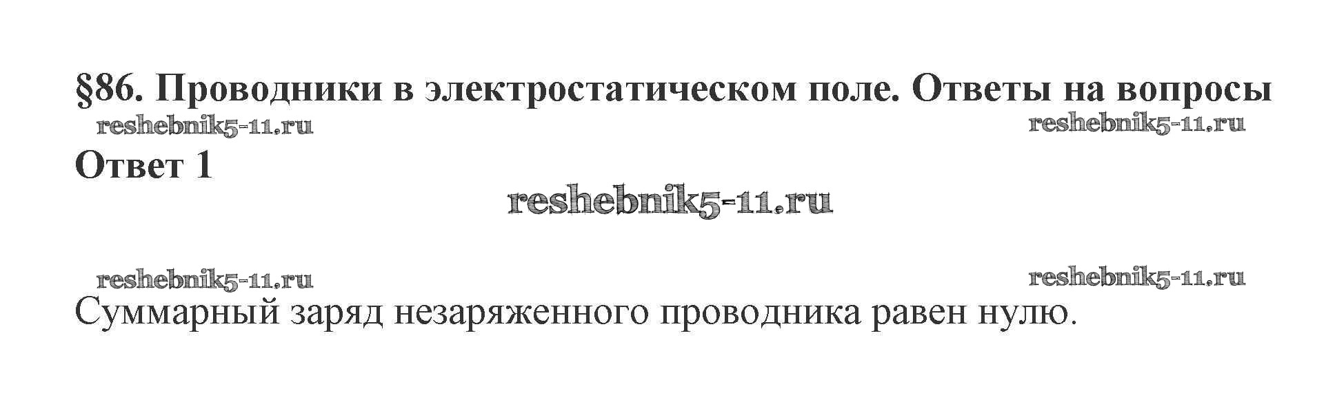Готовая домашняя работа с ответами по Физике за 10 класс Касьянов Учебник Дрофа 2018 ФГОС - 86. Проводники в электростатическом поле 1