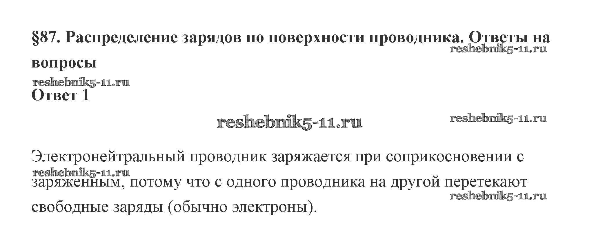 Готовая домашняя работа с ответами по Физике за 10 класс Касьянов Учебник Дрофа 2018 ФГОС - 87. Распределение зарядов по поверхности проводника 1