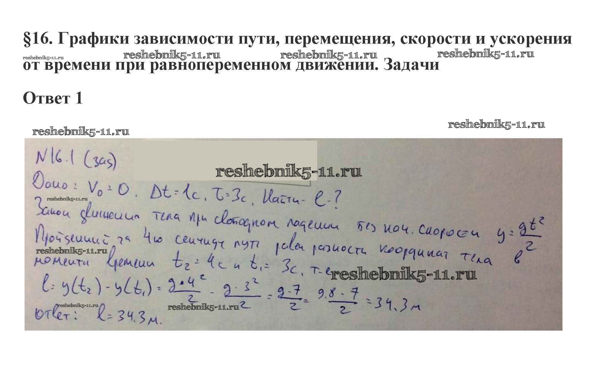 Готовая домашняя работа с ответами по Физике за 10 класс Касьянов Учебник Дрофа 2018 ФГОС - 16. Графики зависимости пути, перемещения 1