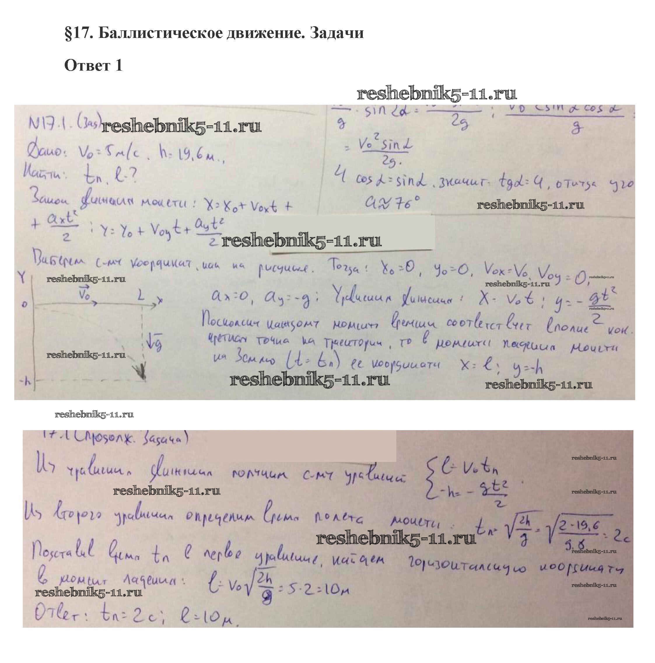 Готовая домашняя работа с ответами по Физике за 10 класс Касьянов Учебник Дрофа 2018 ФГОС - 17. Баллистическое движение 1