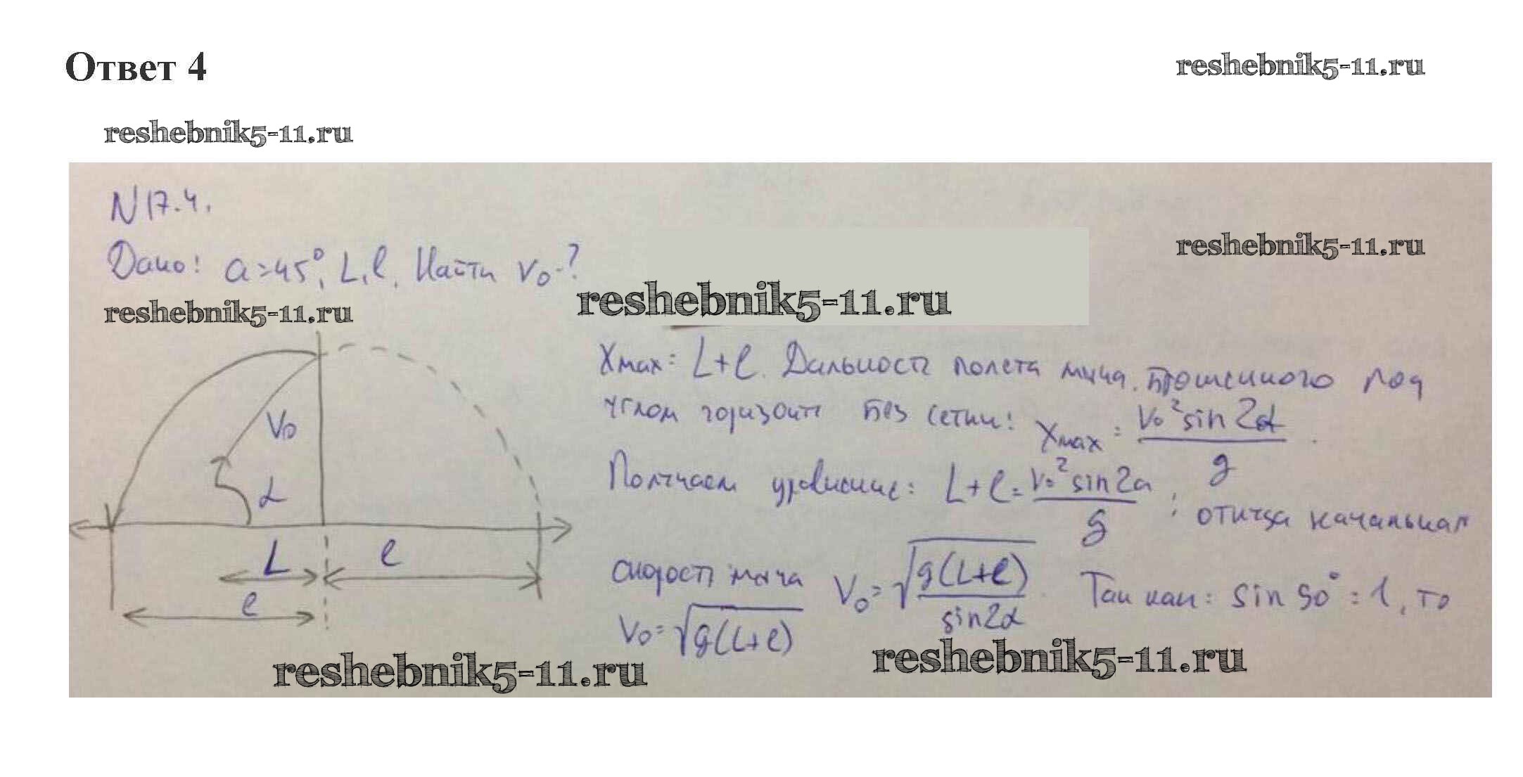 Готовая домашняя работа с ответами по Физике за 10 класс Касьянов Учебник Дрофа 2018 ФГОС - 17. Баллистическое движение 4