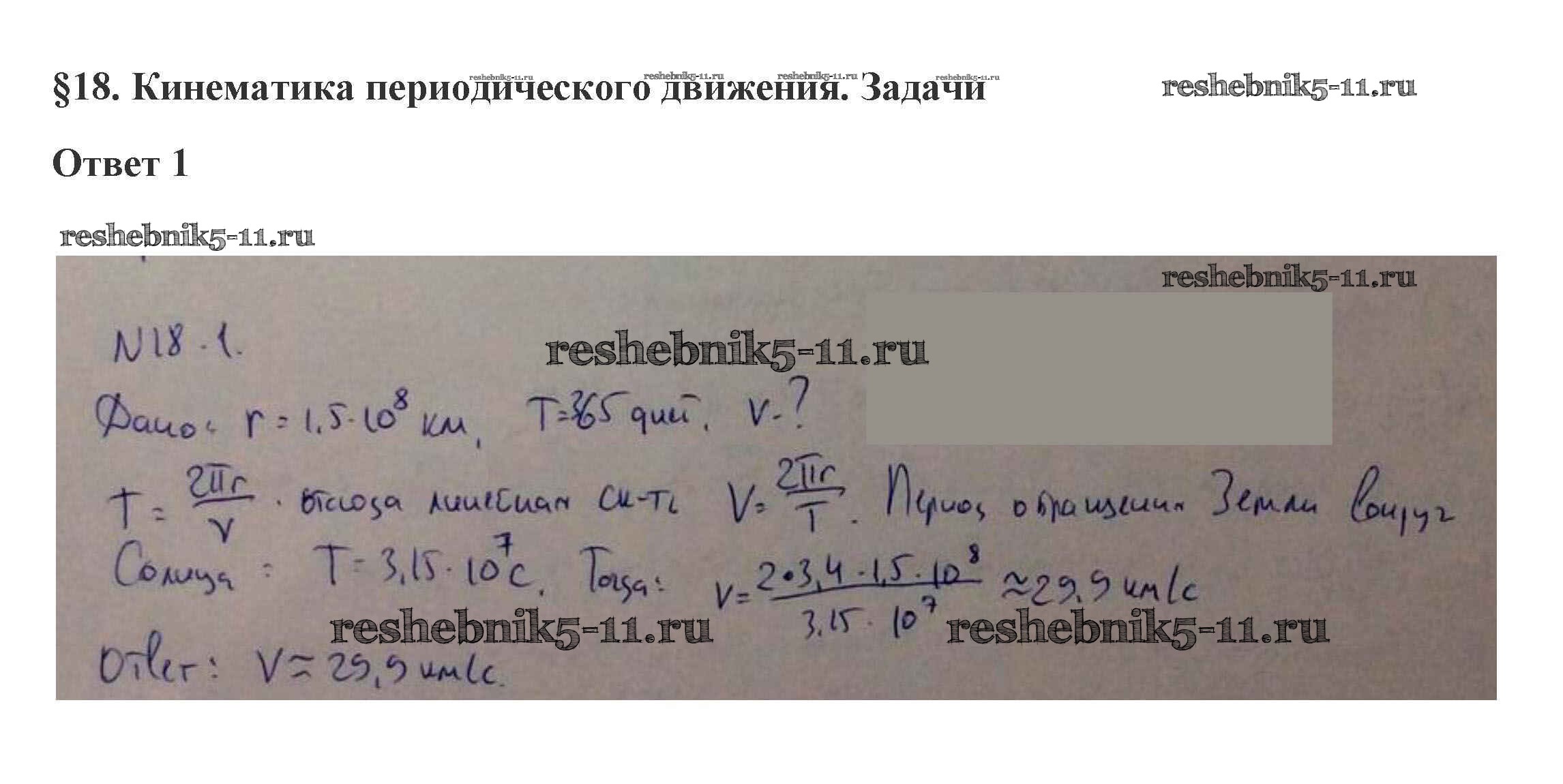 Готовая домашняя работа с ответами по Физике за 10 класс Касьянов Учебник Дрофа 2018 ФГОС - 18. Кинематика периодического движения 1