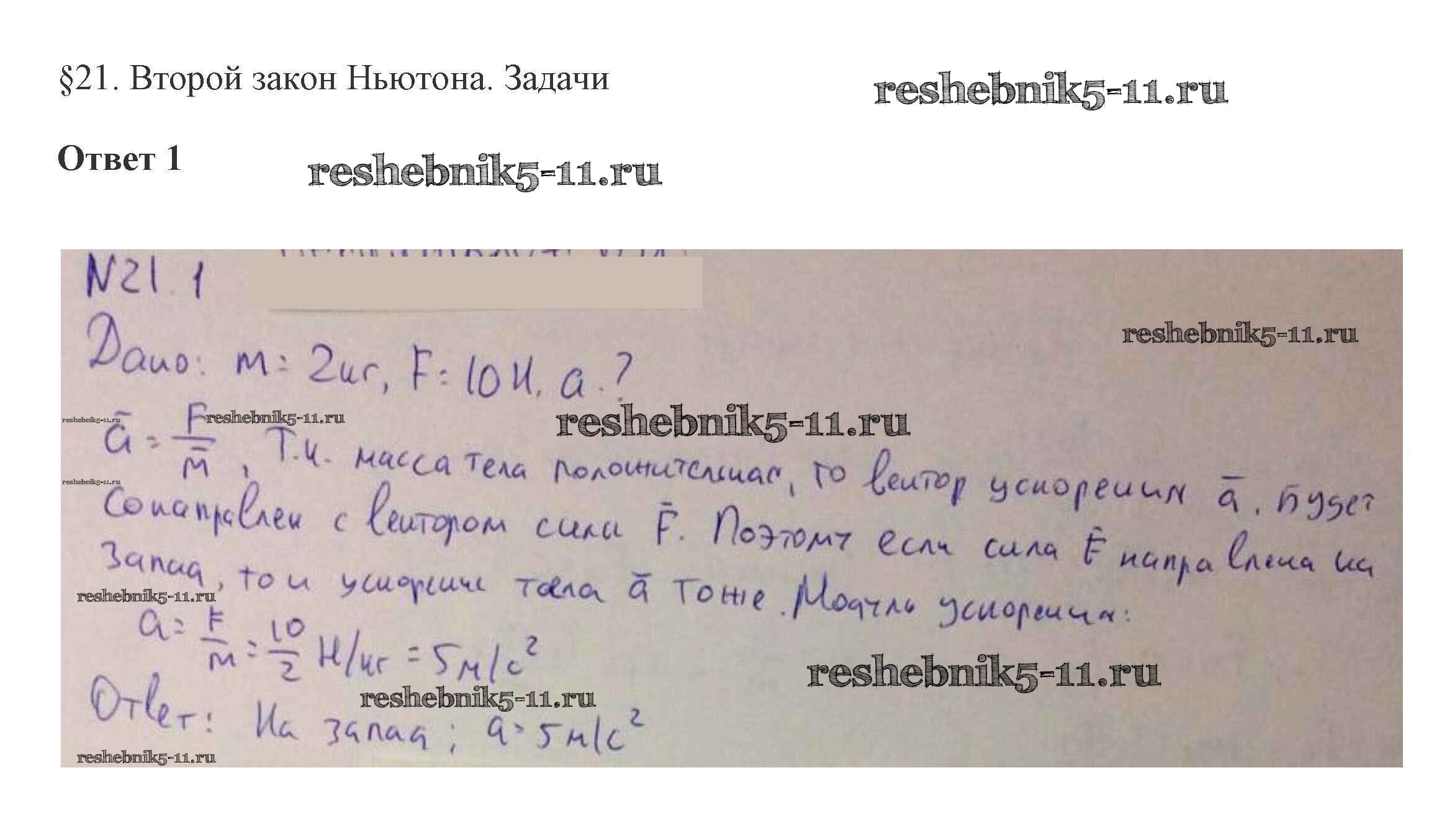Готовая домашняя работа с ответами по Физике за 10 класс Касьянов Учебник Дрофа 2018 ФГОС - 21. Второй закон Ньютона 1