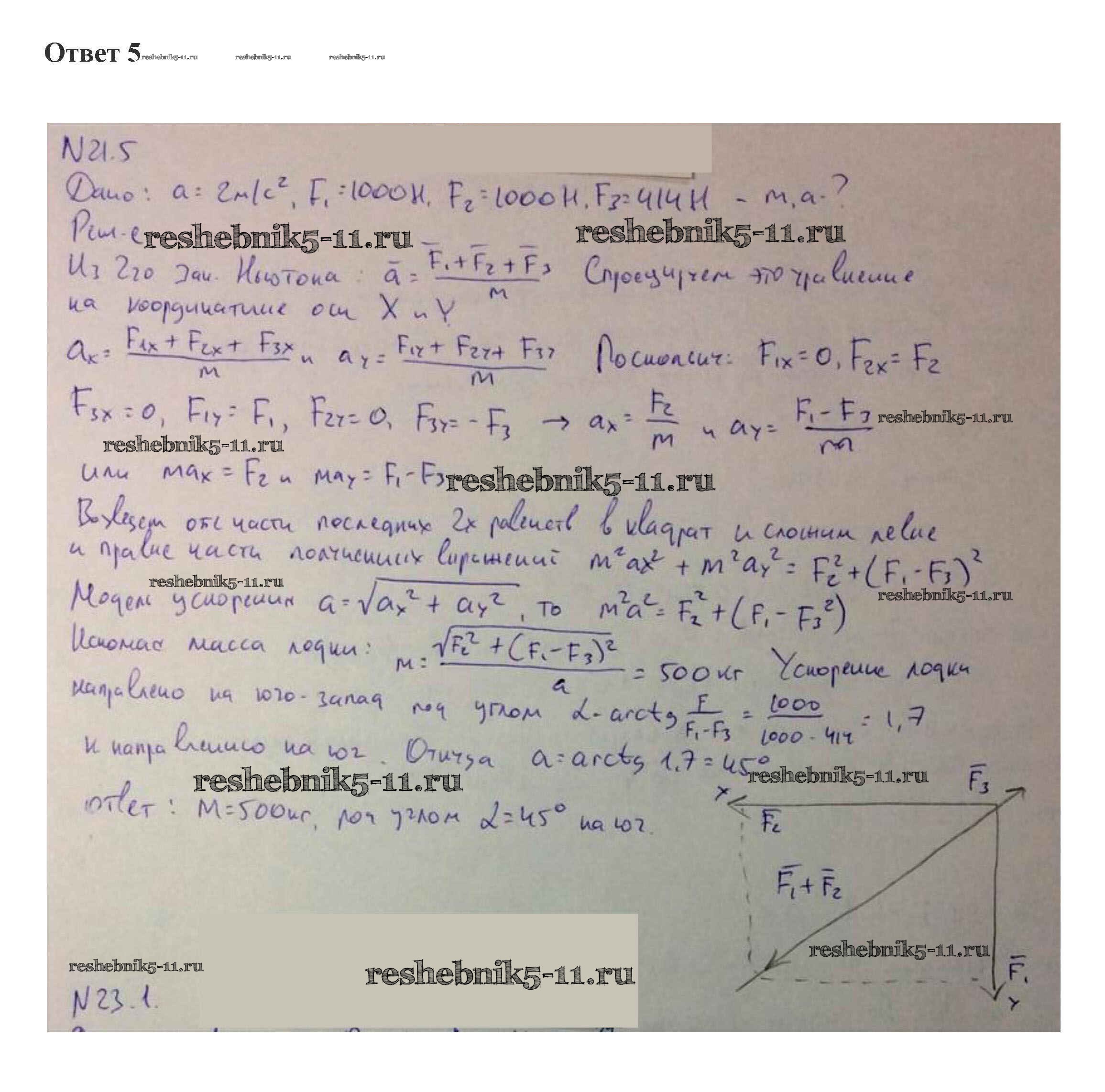 Готовая домашняя работа с ответами по Физике за 10 класс Касьянов Учебник Дрофа 2018 ФГОС - 21. Второй закон Ньютона 5