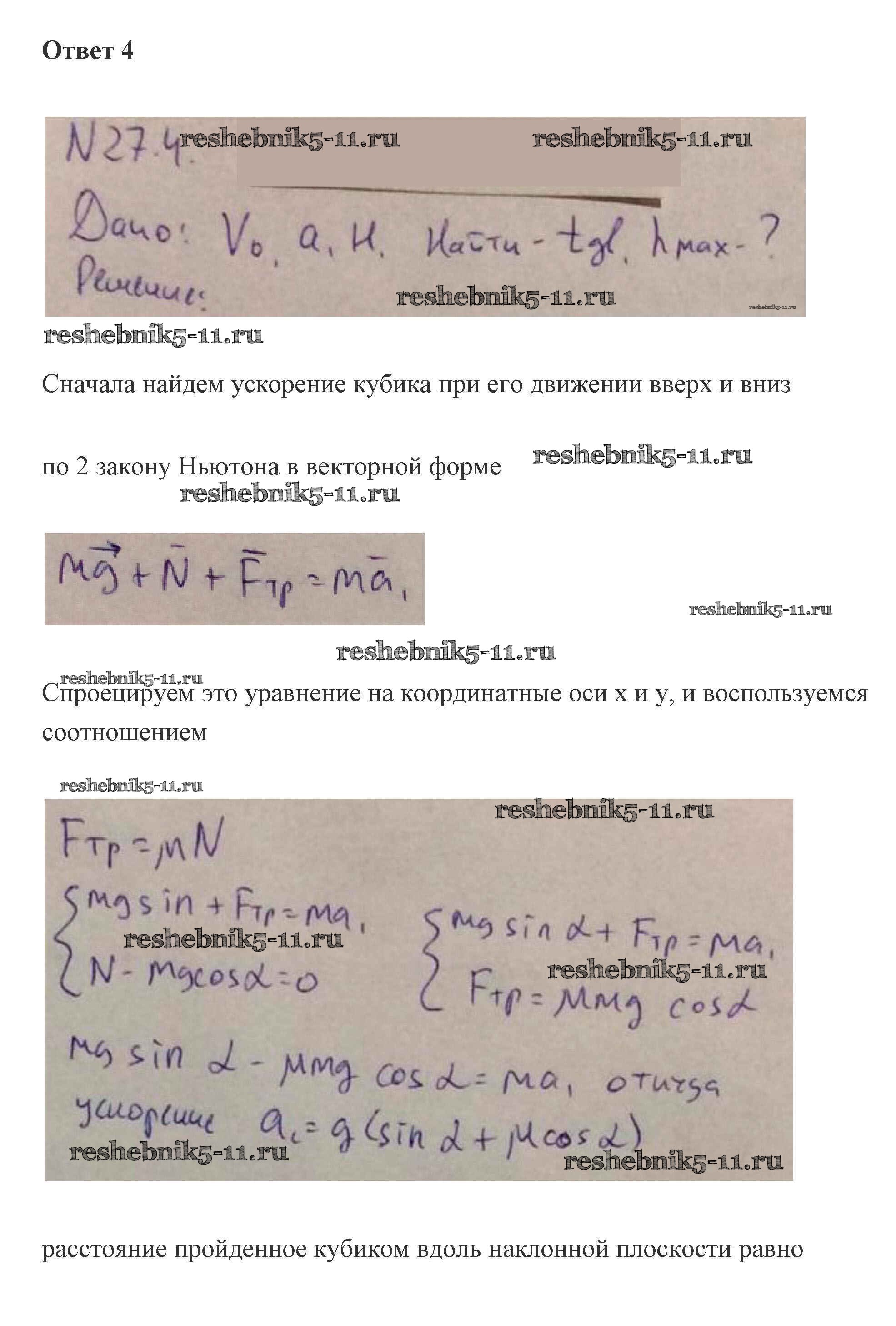Готовая домашняя работа с ответами по Физике за 10 класс Касьянов Учебник Дрофа 2018 ФГОС - 27. Применение законов Ньютона 4