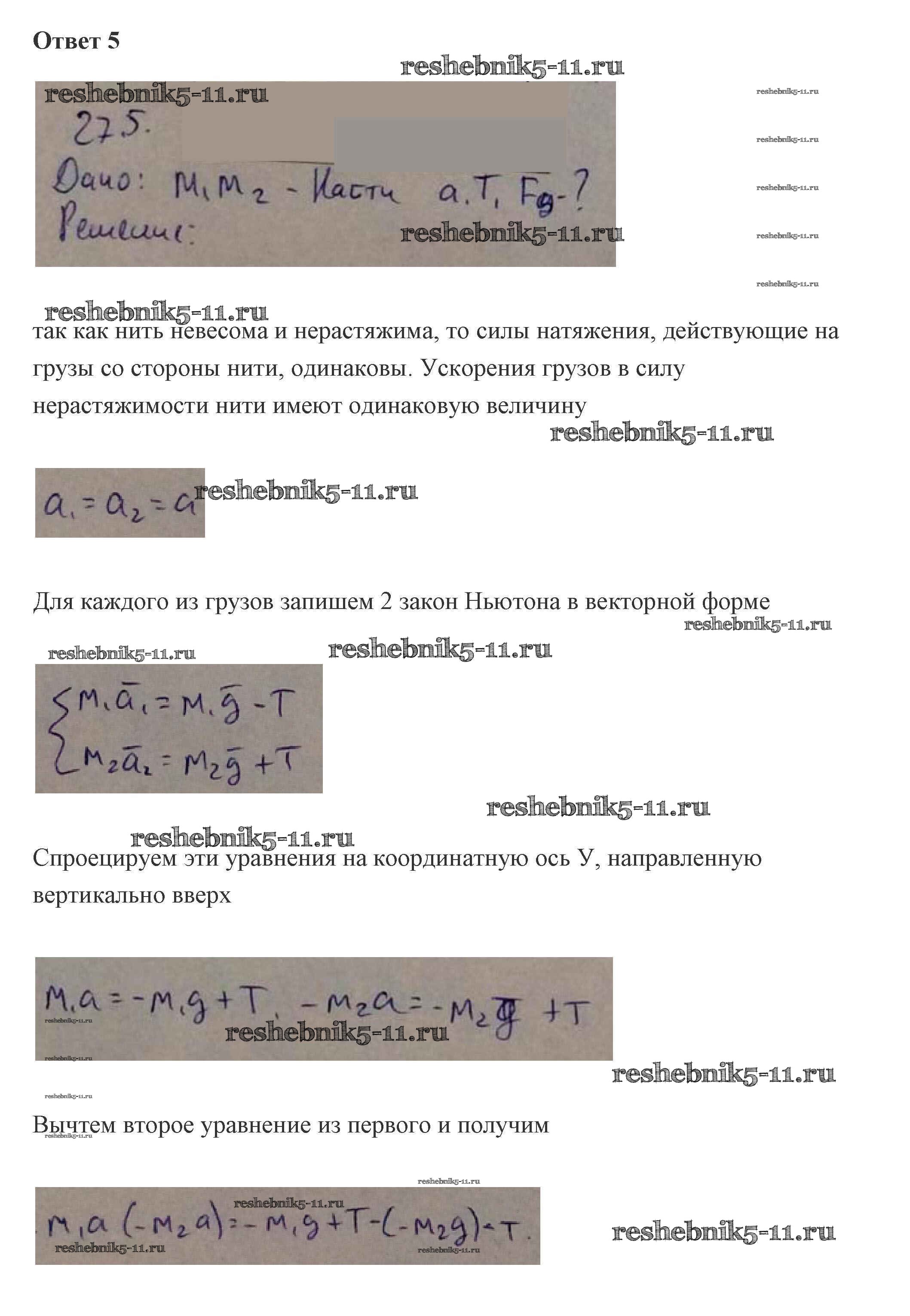 Готовая домашняя работа с ответами по Физике за 10 класс Касьянов Учебник Дрофа 2018 ФГОС - 27. Применение законов Ньютона 5