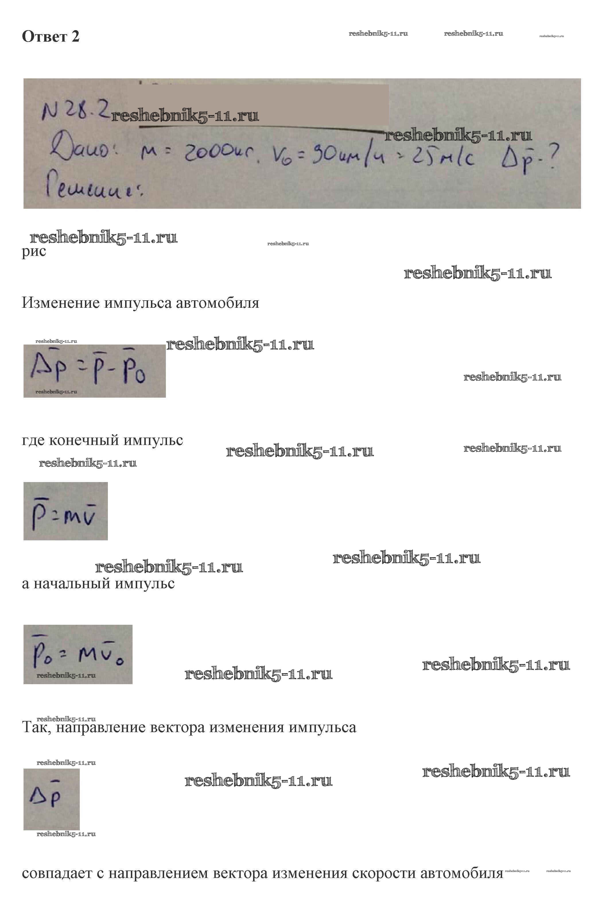 Готовая домашняя работа с ответами по Физике за 10 класс Касьянов Учебник Дрофа 2018 ФГОС - 28. Импульс материальной точки 2