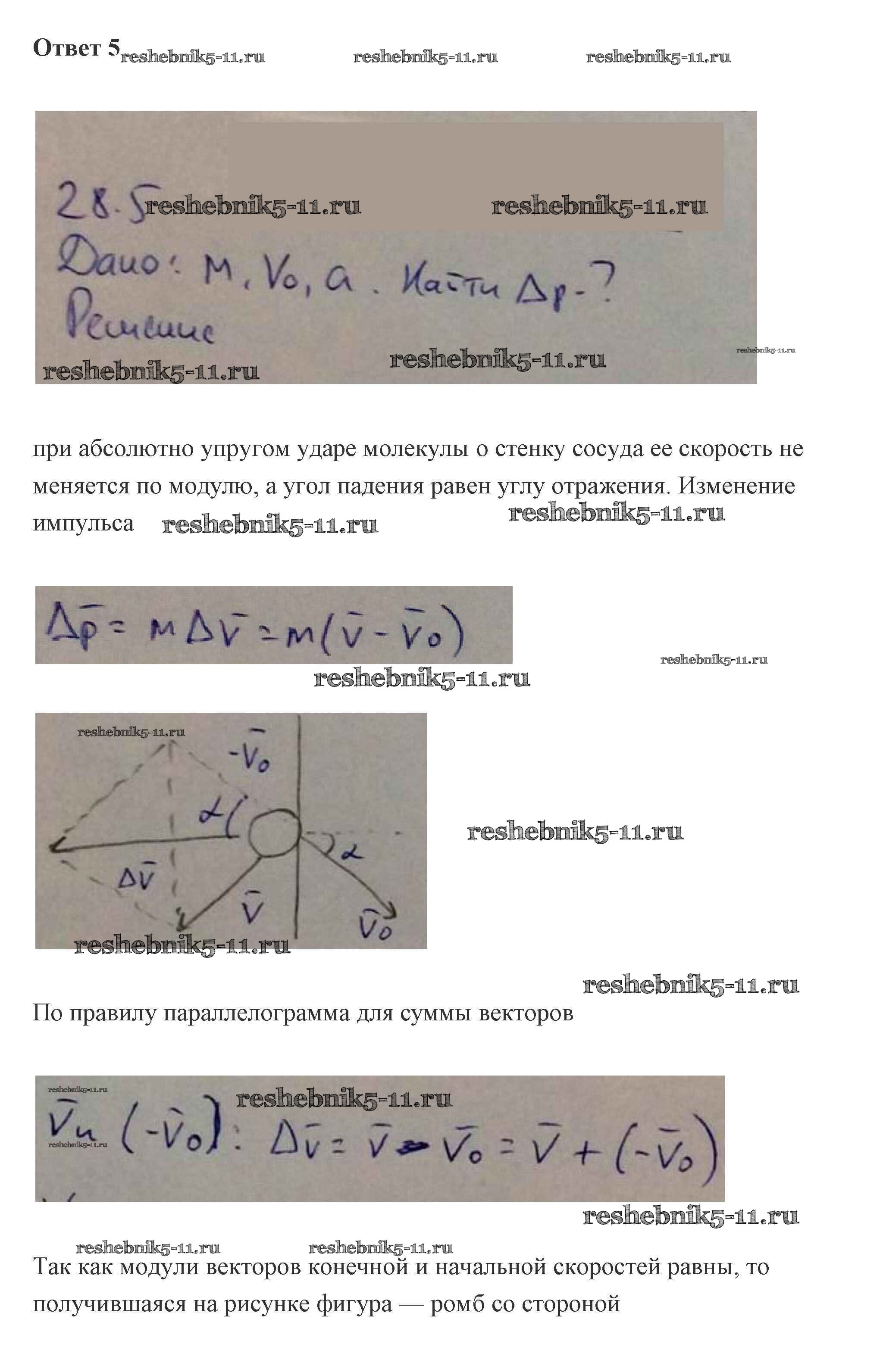 Готовая домашняя работа с ответами по Физике за 10 класс Касьянов Учебник Дрофа 2018 ФГОС - 28. Импульс материальной точки 5