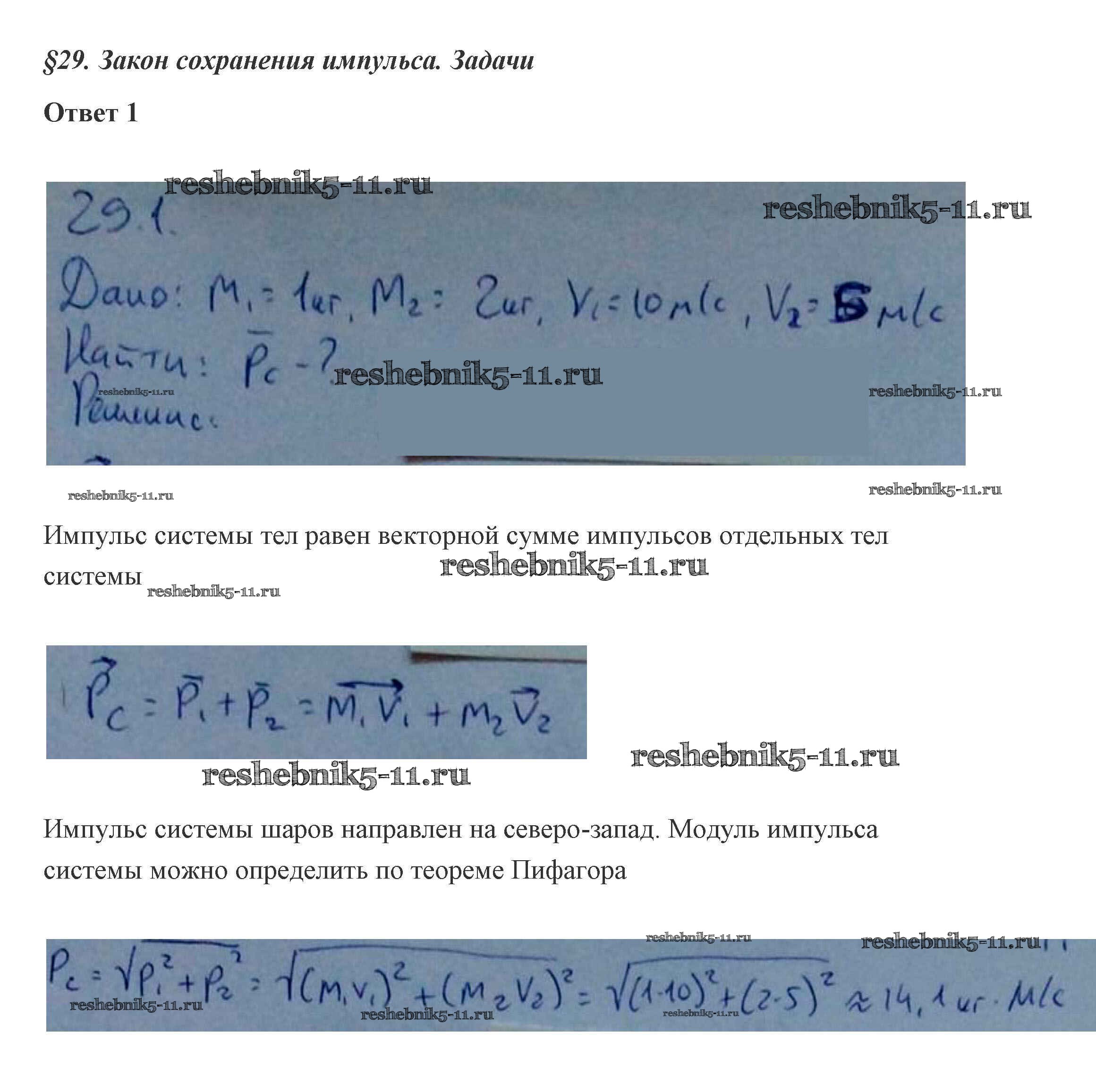 Готовая домашняя работа с ответами по Физике за 10 класс Касьянов Учебник Дрофа 2018 ФГОС - 29. Закон сохранения импульса 1