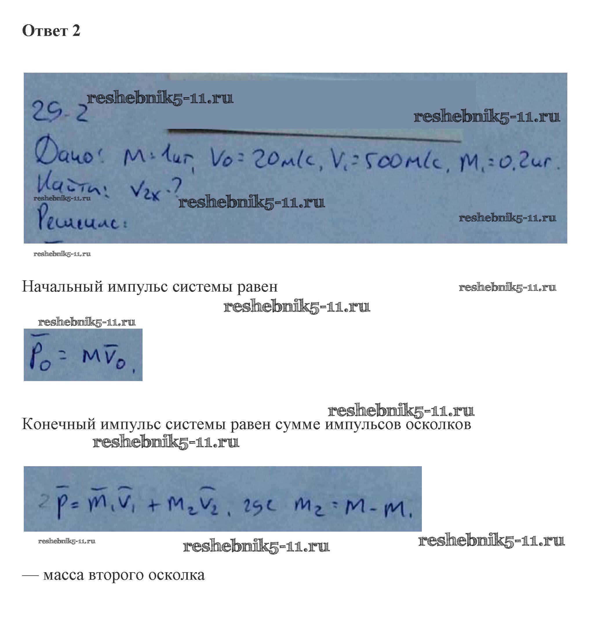 Готовая домашняя работа с ответами по Физике за 10 класс Касьянов Учебник Дрофа 2018 ФГОС - 29. Закон сохранения импульса 2