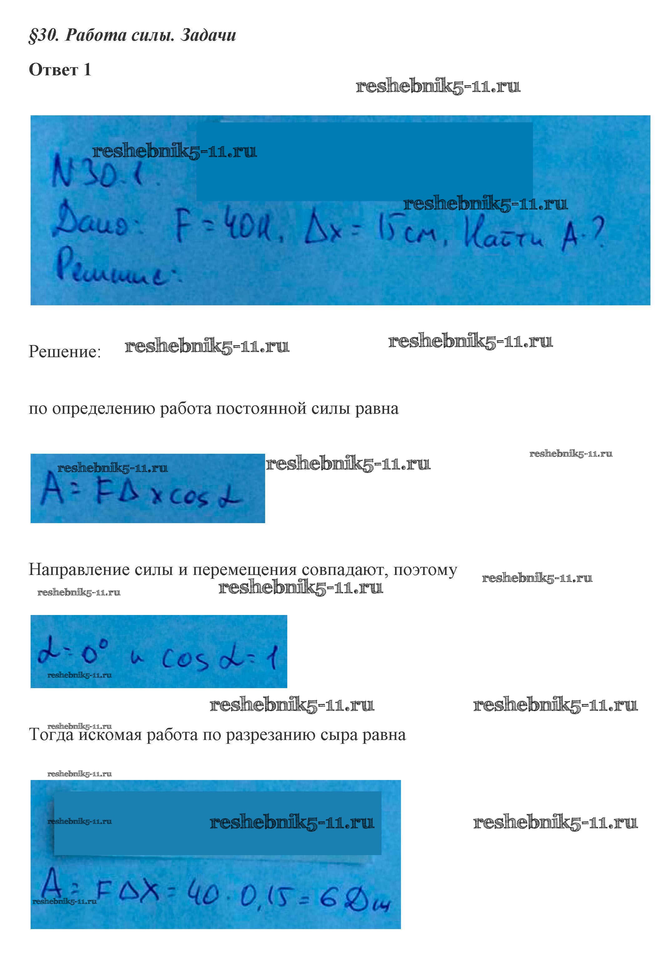 Готовая домашняя работа с ответами по Физике за 10 класс Касьянов Учебник Дрофа 2018 ФГОС - 30. Работа силы 1