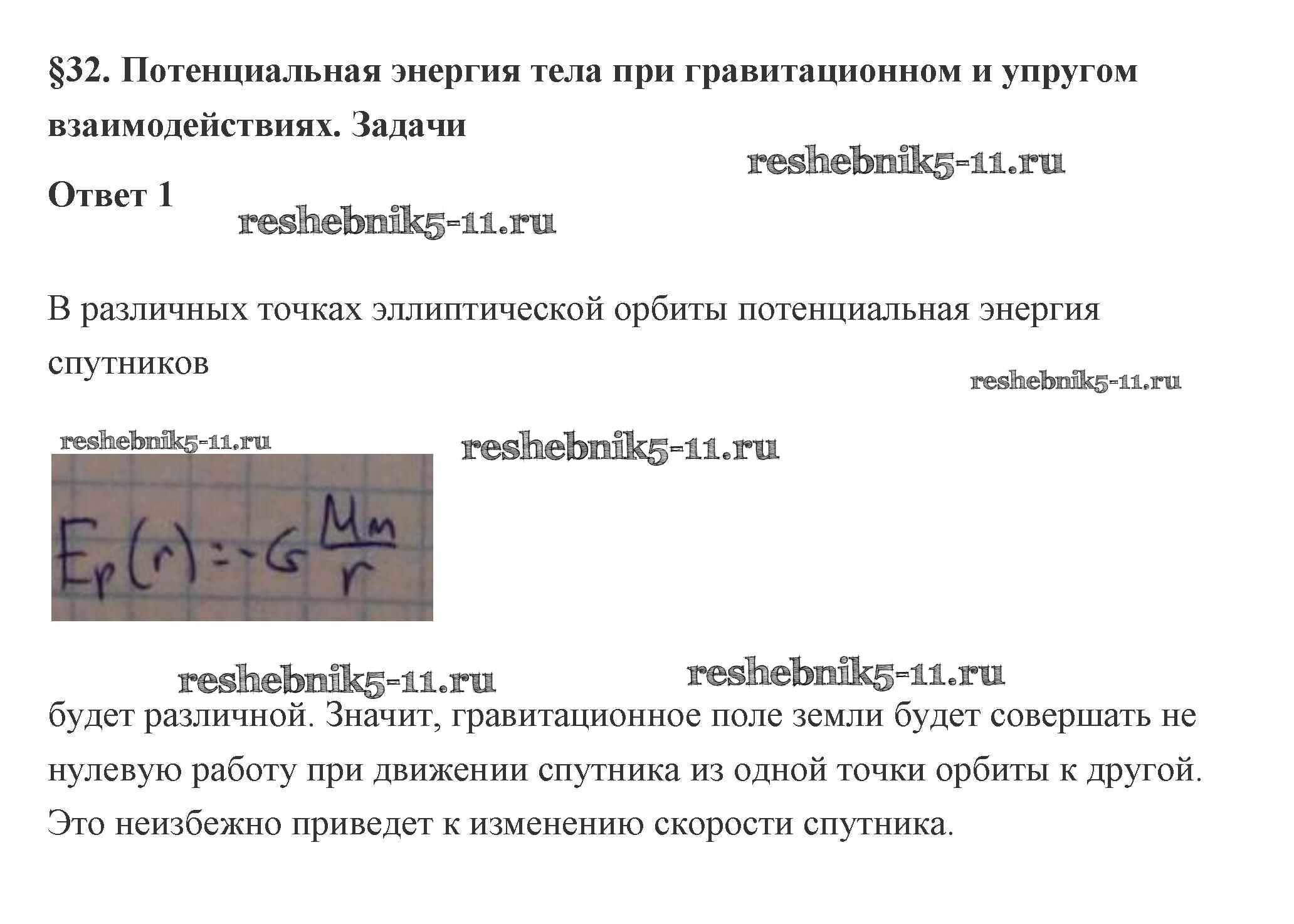 Готовая домашняя работа с ответами по Физике за 10 класс Касьянов Учебник Дрофа 2018 ФГОС - 32. Потенциальная энергия тела при гравитационном и упругом взаимодействиях 1