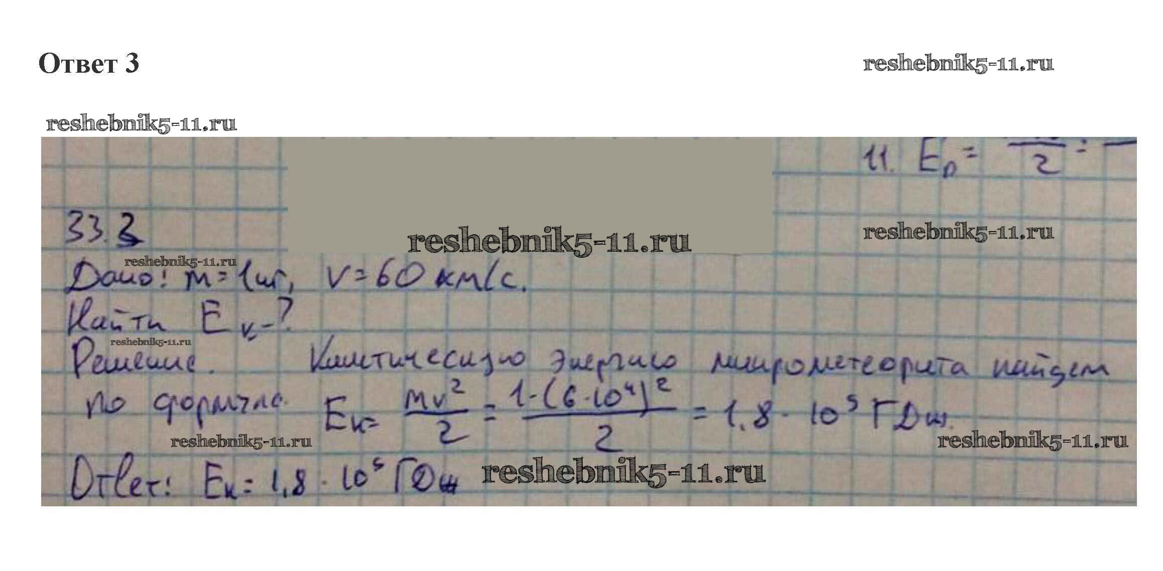 Готовая домашняя работа с ответами по Физике за 10 класс Касьянов Учебник Дрофа 2018 ФГОС - 33. Кинетическая энергия 3