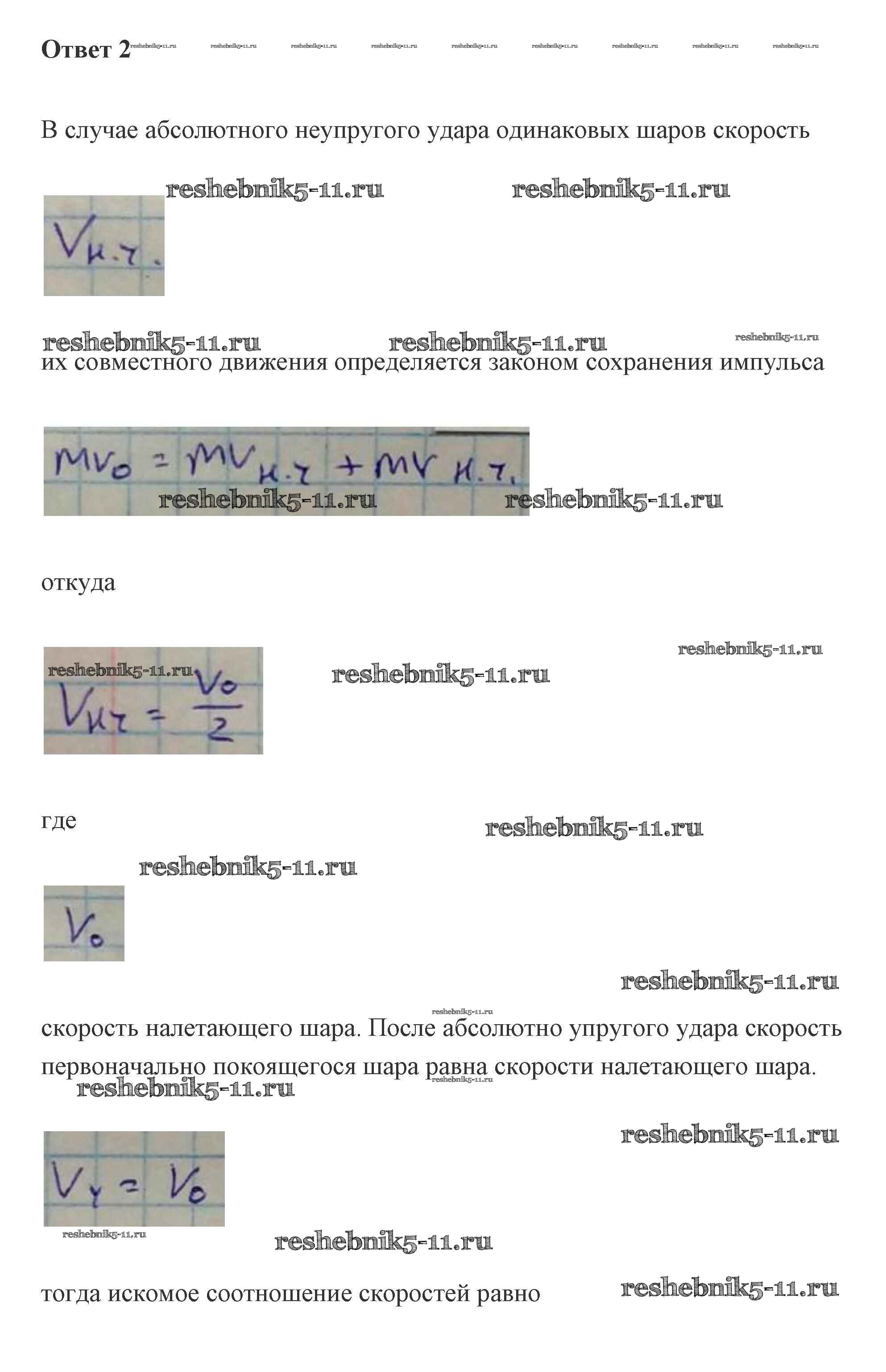 Готовая домашняя работа с ответами по Физике за 10 класс Касьянов Учебник Дрофа 2018 ФГОС - 36. Абсолютно неупругое и абсолютно упругое столкновения 2