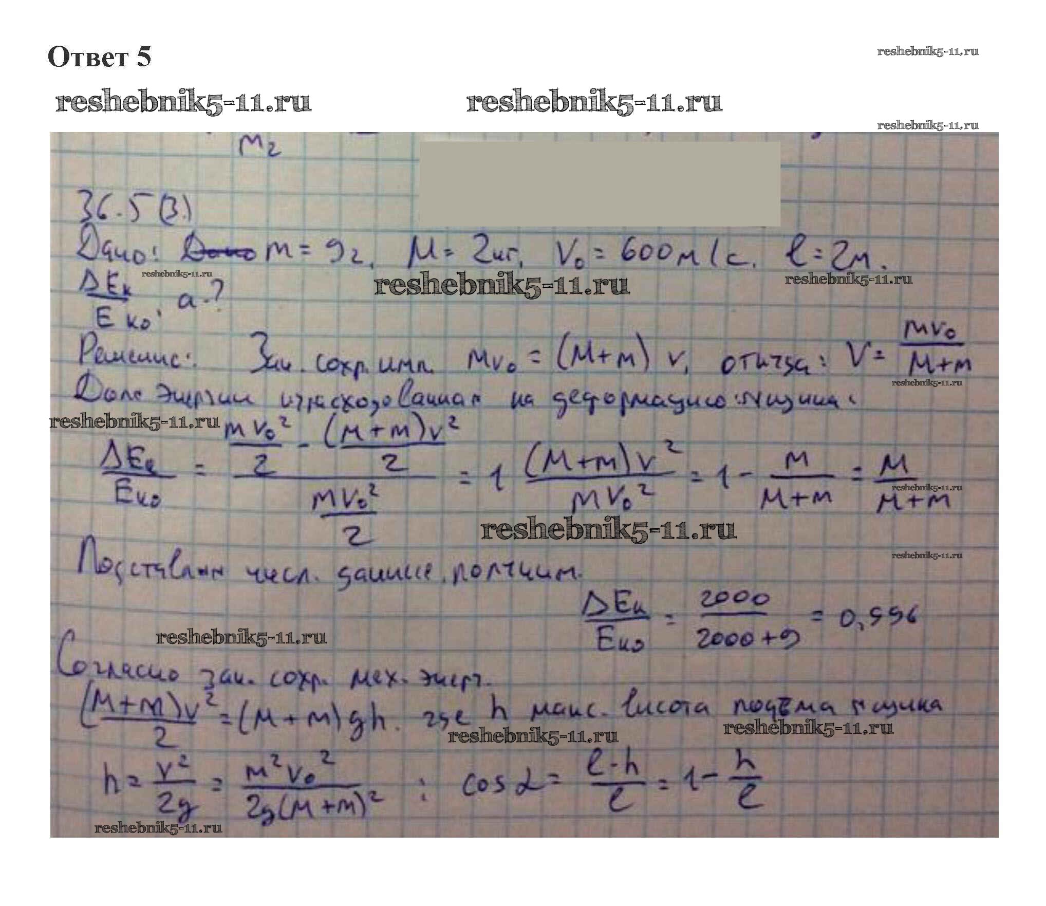 Готовая домашняя работа с ответами по Физике за 10 класс Касьянов Учебник Дрофа 2018 ФГОС - 36. Абсолютно неупругое и абсолютно упругое столкновения 5