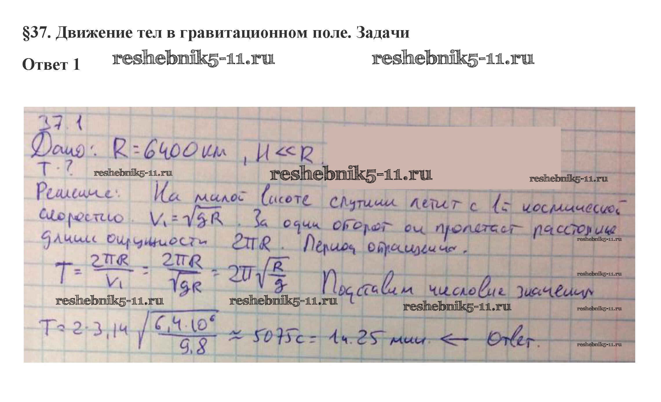 Готовая домашняя работа с ответами по Физике за 10 класс Касьянов Учебник Дрофа 2018 ФГОС - 37. Движение тел в гравитационном поле 1