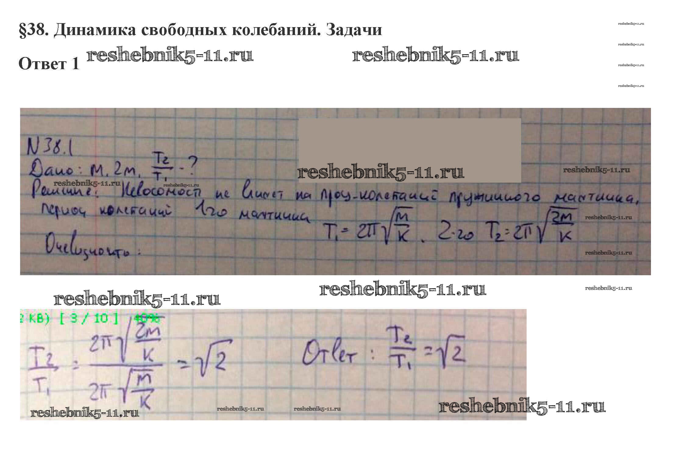 Готовая домашняя работа с ответами по Физике за 10 класс Касьянов Учебник Дрофа 2018 ФГОС - 38. Динамика свободных колебаний 1