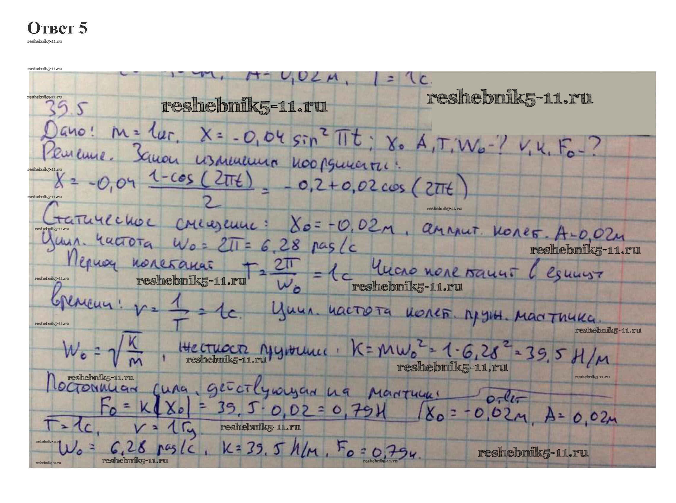 Готовая домашняя работа с ответами по Физике за 10 класс Касьянов Учебник Дрофа 2018 ФГОС - 39. Колебательная система под действием внешних сил 5