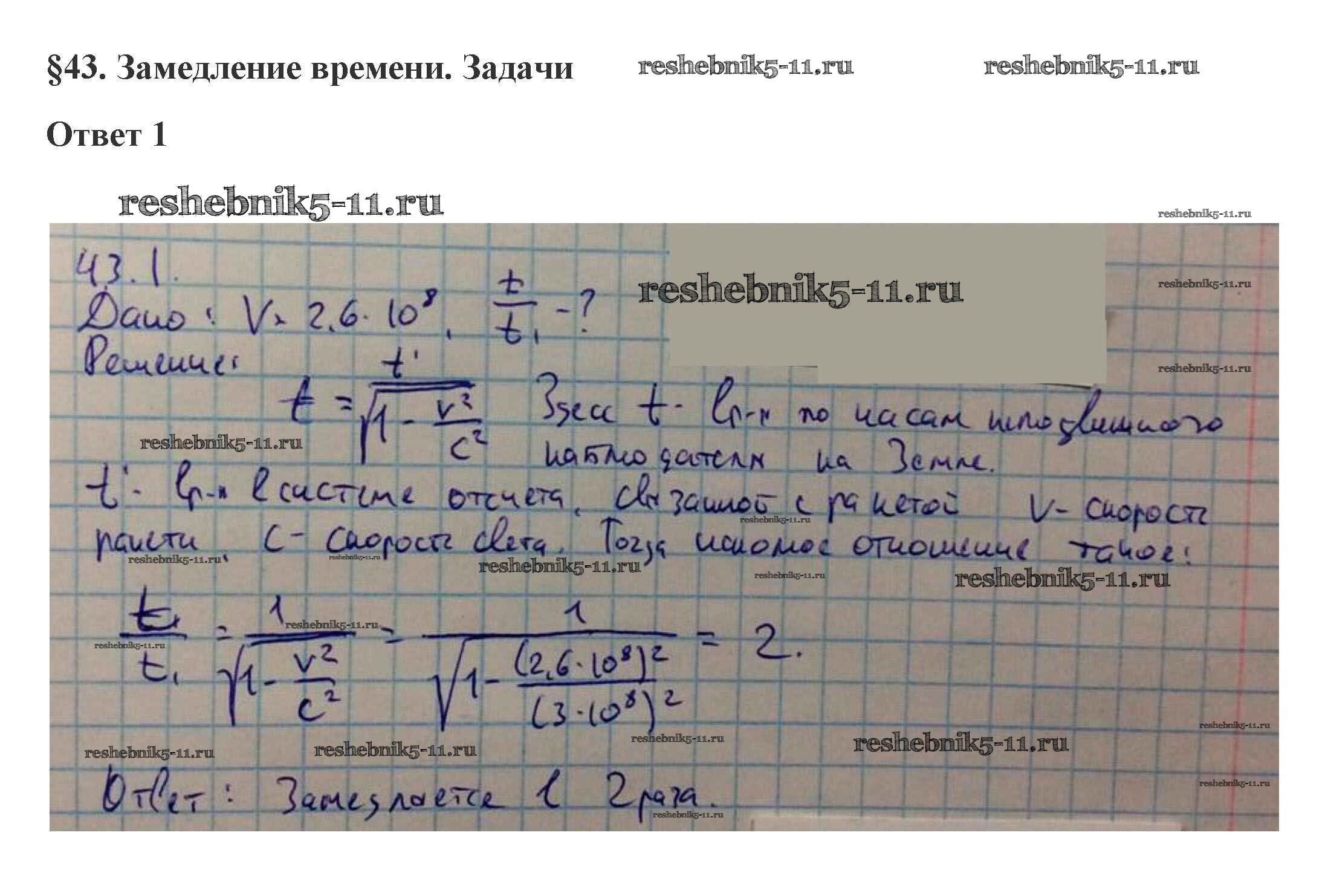 Готовая домашняя работа с ответами по Физике за 10 класс Касьянов Учебник Дрофа 2018 ФГОС - 43. Замедление времени 1