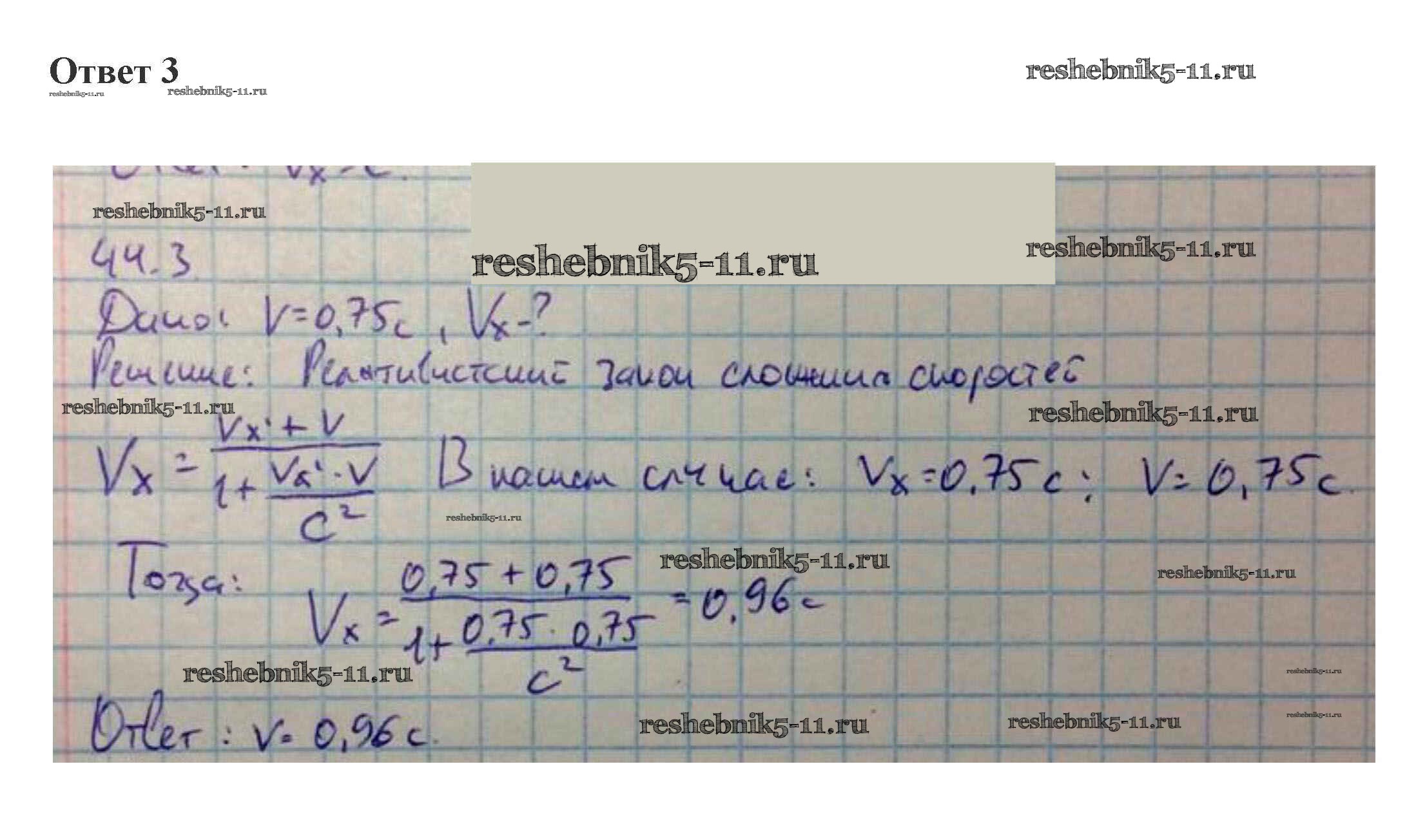 Готовая домашняя работа с ответами по Физике за 10 класс Касьянов Учебник Дрофа 2018 ФГОС - 44. Релятивистский закон сложения скоростей 3