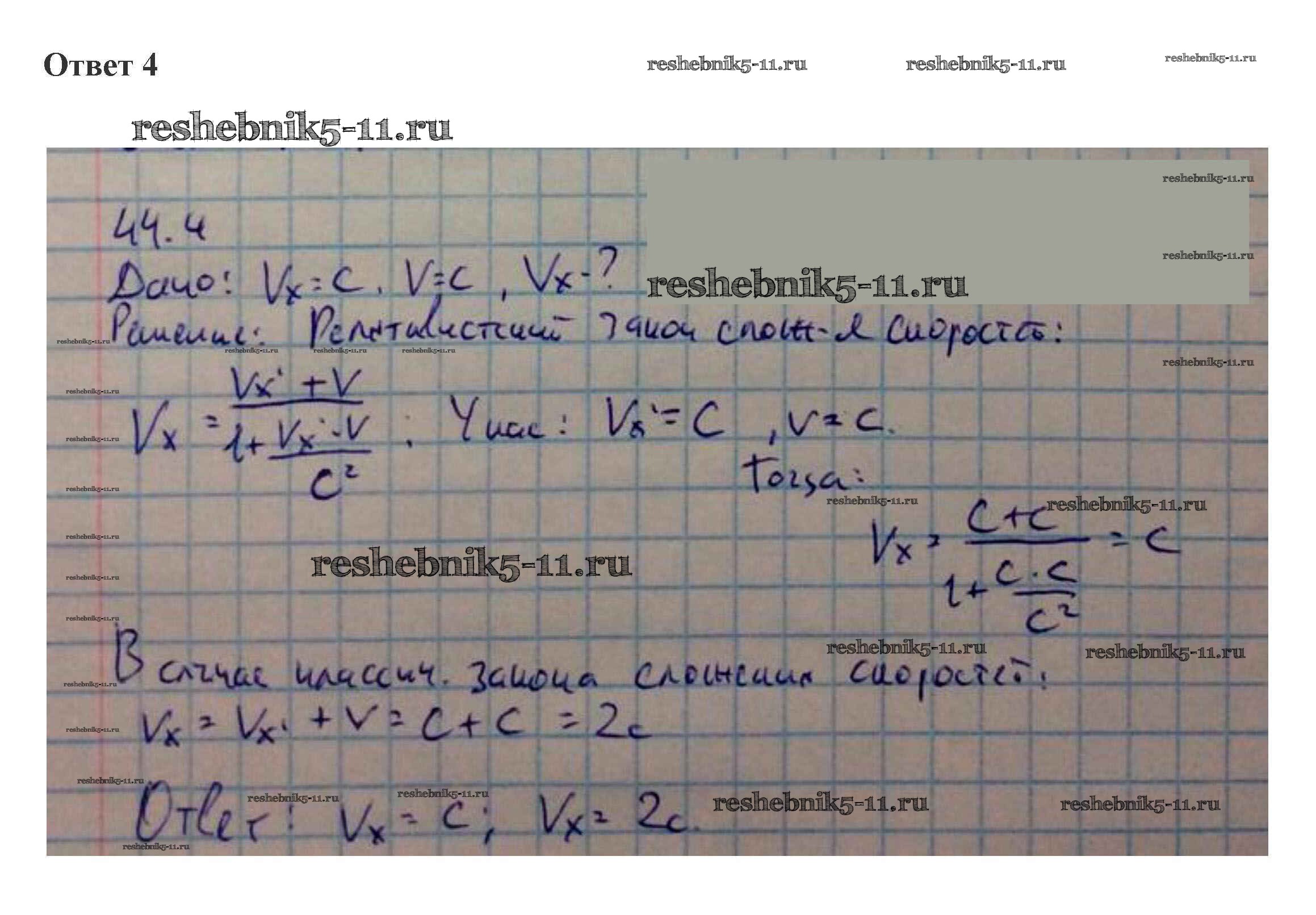 Готовая домашняя работа с ответами по Физике за 10 класс Касьянов Учебник Дрофа 2018 ФГОС - 44. Релятивистский закон сложения скоростей 4
