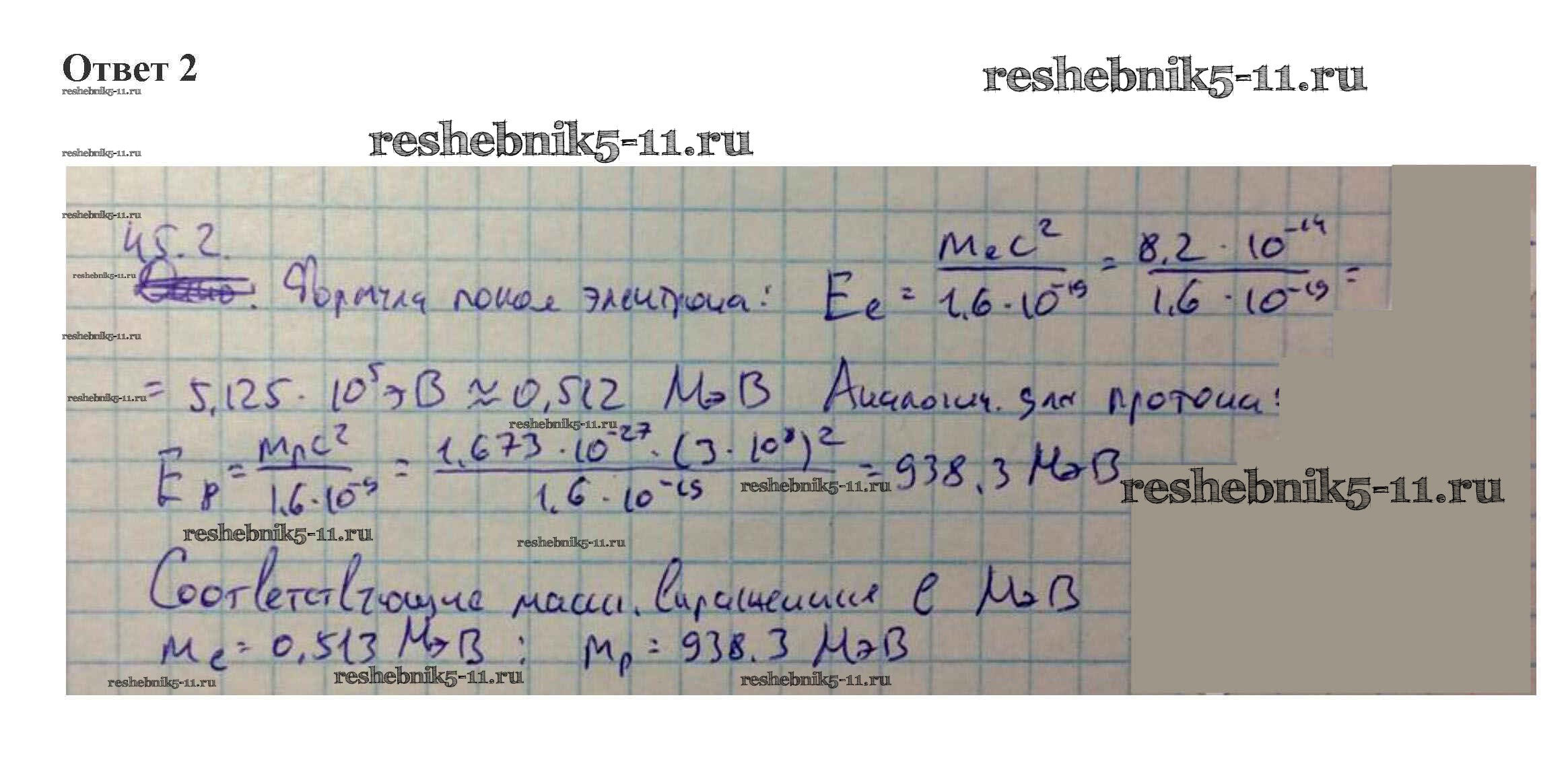 Готовая домашняя работа с ответами по Физике за 10 класс Касьянов Учебник Дрофа 2018 ФГОС - 45. Взаимосвязь массы и энергии 2