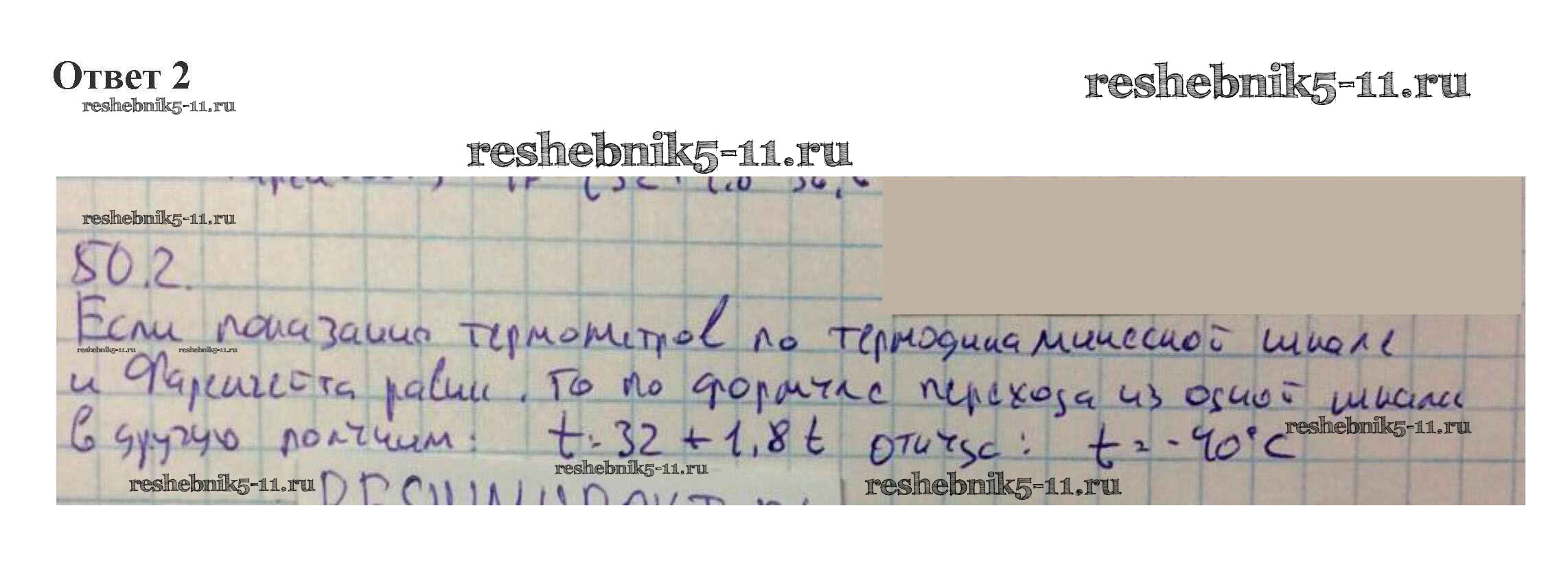 Готовая домашняя работа с ответами по Физике за 10 класс Касьянов Учебник Дрофа 2018 ФГОС - 50. Температура 2
