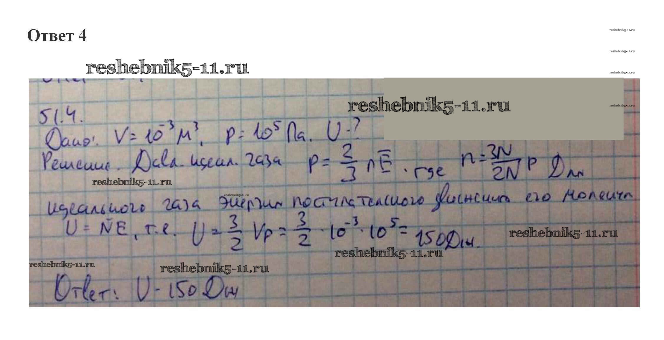 Готовая домашняя работа с ответами по Физике за 10 класс Касьянов Учебник Дрофа 2018 ФГОС - 51. Основное уравнение молекулярно-кинетической теории 4