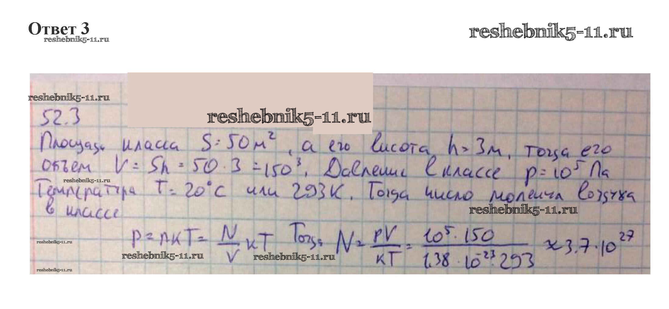 Готовая домашняя работа с ответами по Физике за 10 класс Касьянов Учебник Дрофа 2018 ФГОС - 52. Уравнение Клапейрона-Менделеева 3