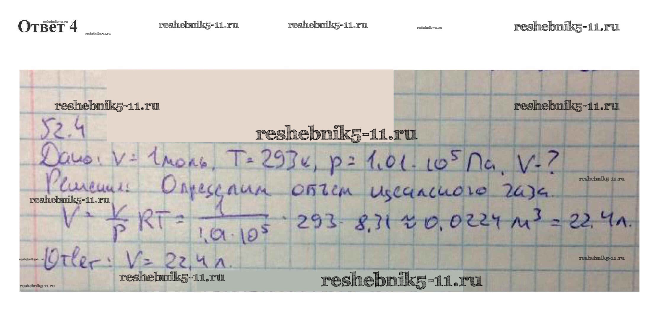 Готовая домашняя работа с ответами по Физике за 10 класс Касьянов Учебник Дрофа 2018 ФГОС - 52. Уравнение Клапейрона-Менделеева 4