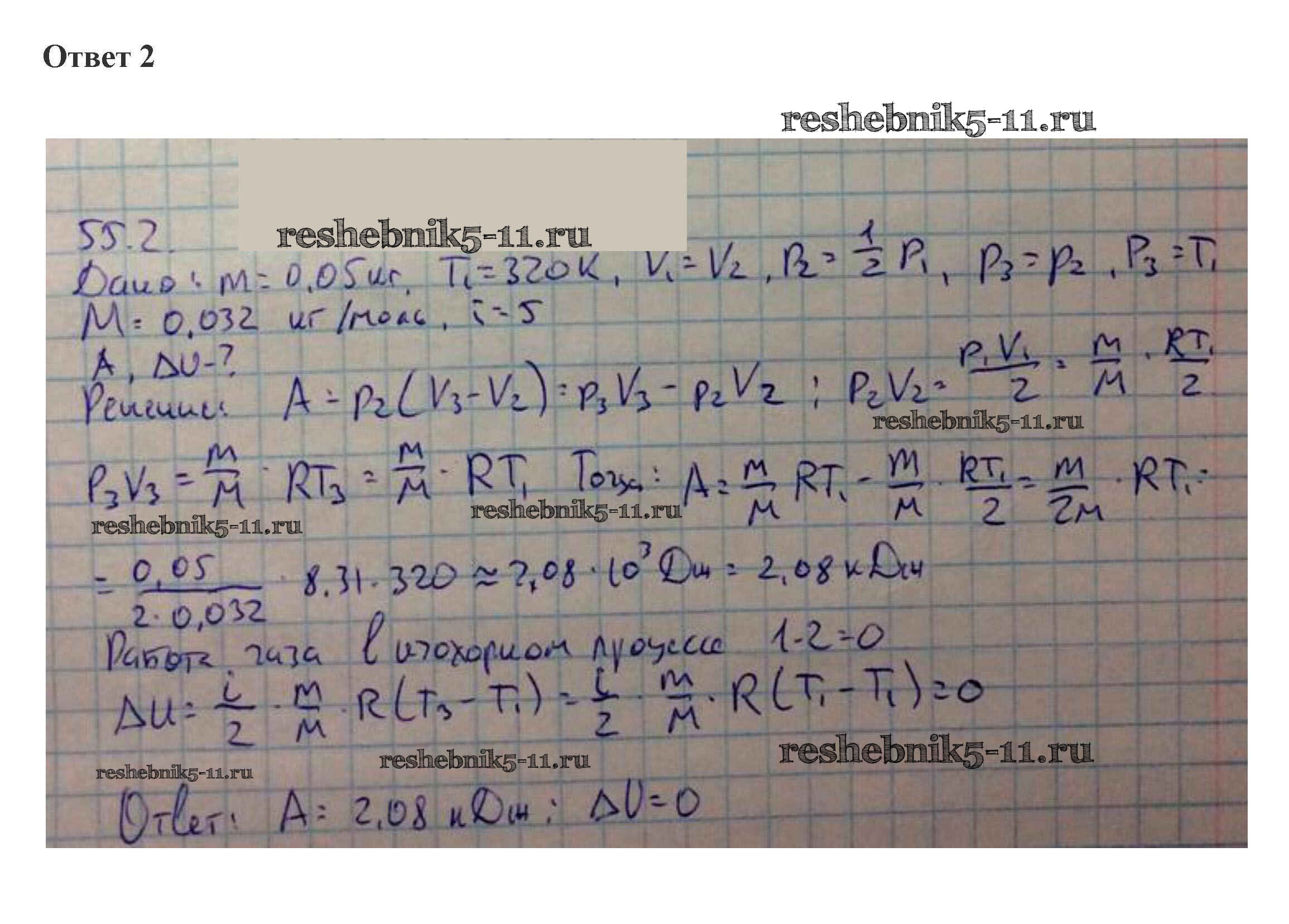 Готовая домашняя работа с ответами по Физике за 10 класс Касьянов Учебник Дрофа 2018 ФГОС - 55. Работа газа при изопроцессах 2