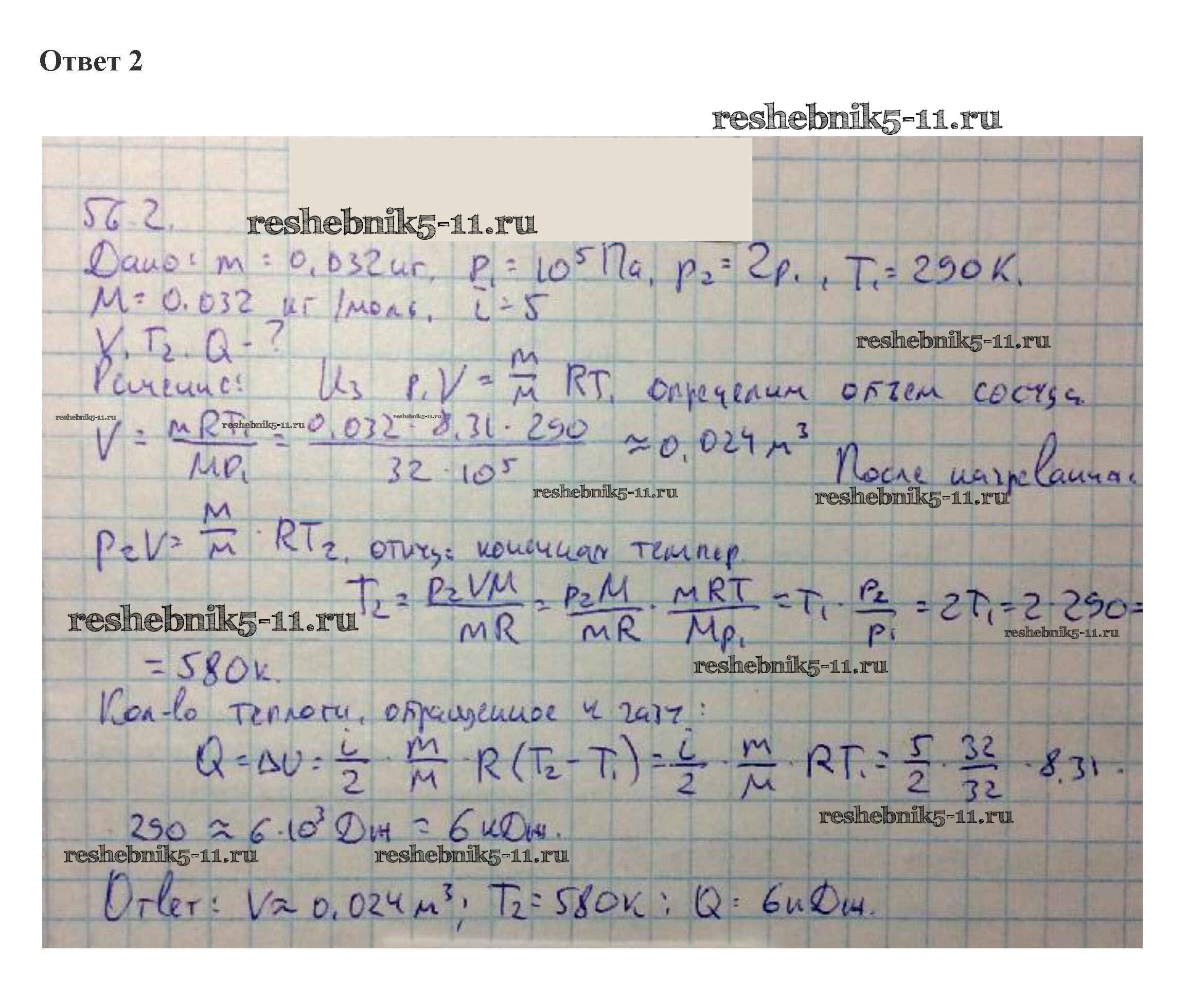 Готовая домашняя работа с ответами по Физике за 10 класс Касьянов Учебник Дрофа 2018 ФГОС - 56. Первый закон термодинамики 2