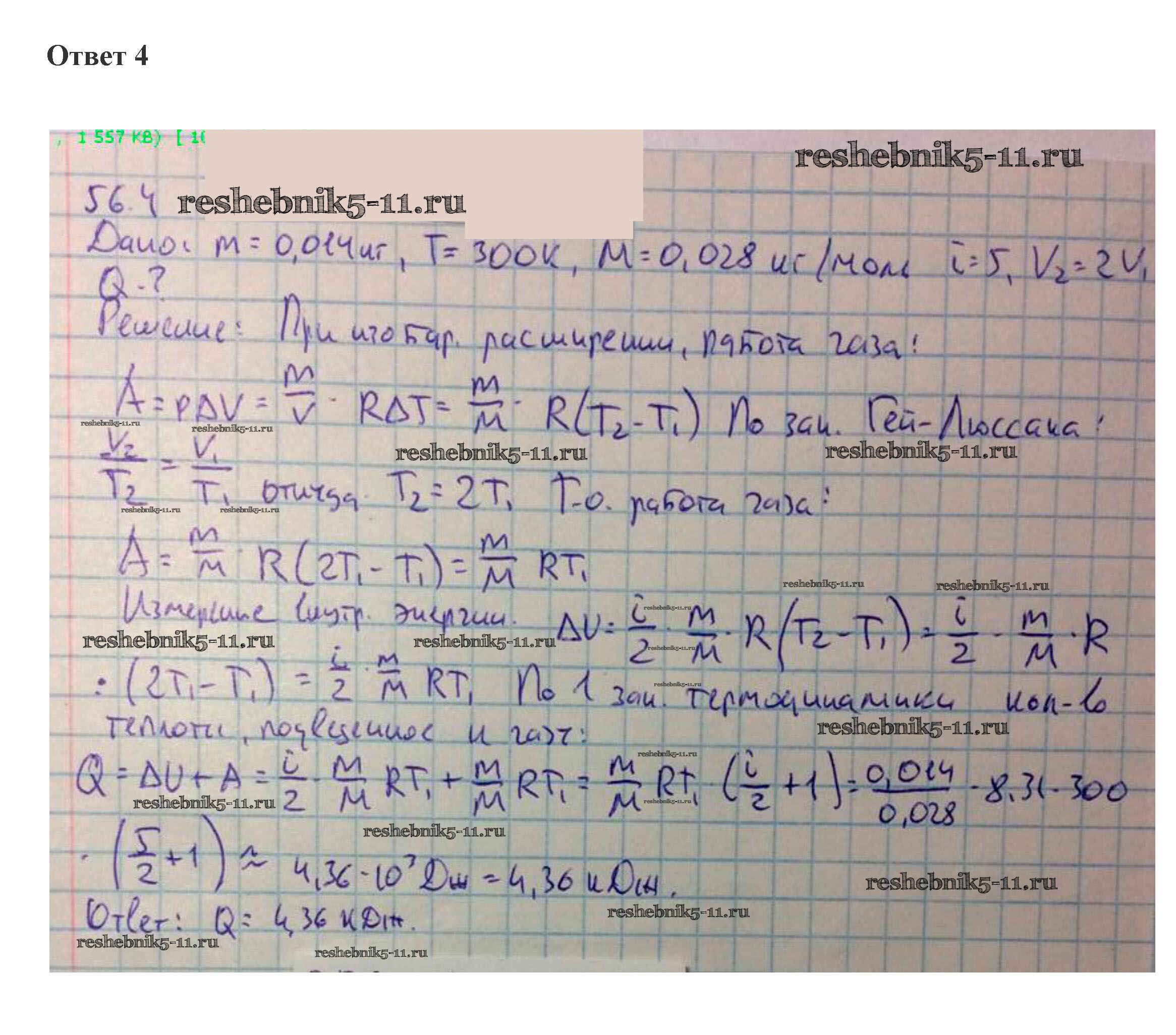 Готовая домашняя работа с ответами по Физике за 10 класс Касьянов Учебник Дрофа 2018 ФГОС - 56. Первый закон термодинамики 4