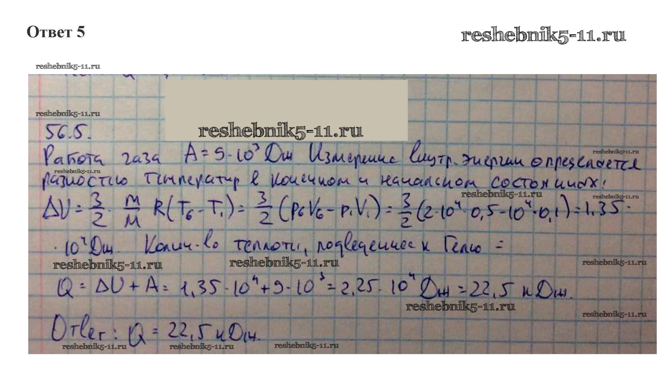 Готовая домашняя работа с ответами по Физике за 10 класс Касьянов Учебник Дрофа 2018 ФГОС - 56. Первый закон термодинамики 5