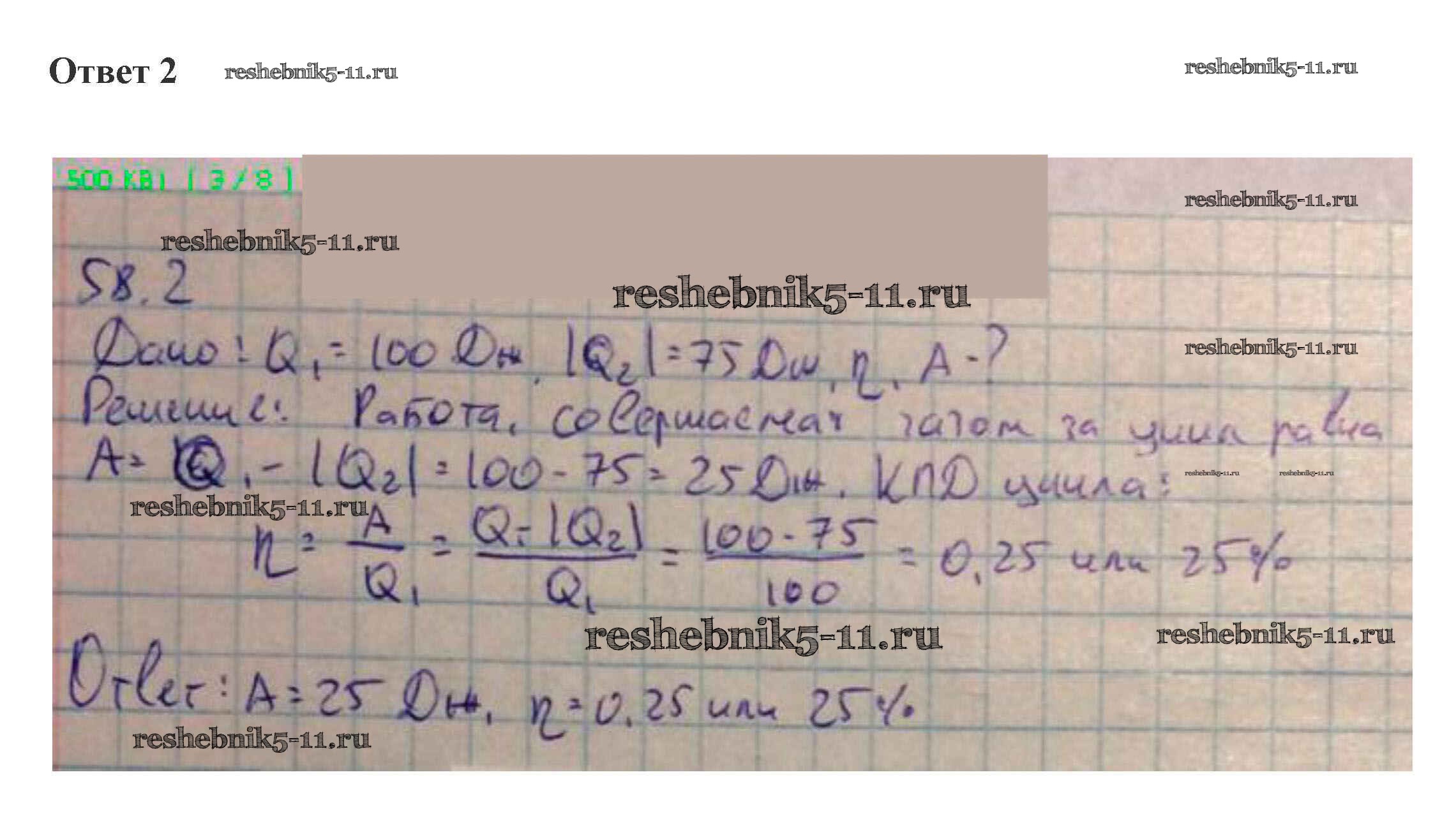 Готовая домашняя работа с ответами по Физике за 10 класс Касьянов Учебник Дрофа 2018 ФГОС - 58. Тепловые двигатели 2