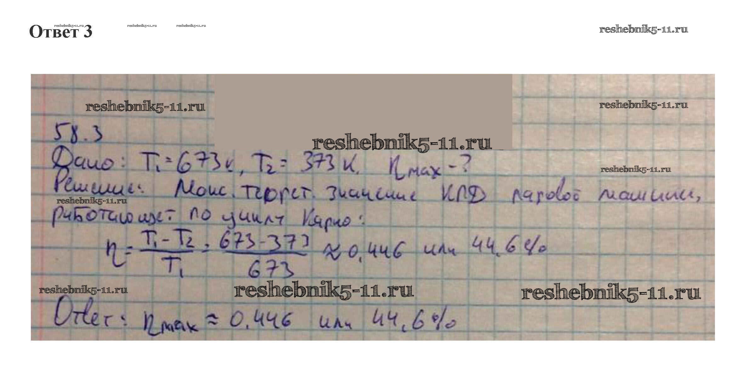 Готовая домашняя работа с ответами по Физике за 10 класс Касьянов Учебник Дрофа 2018 ФГОС - 58. Тепловые двигатели 3