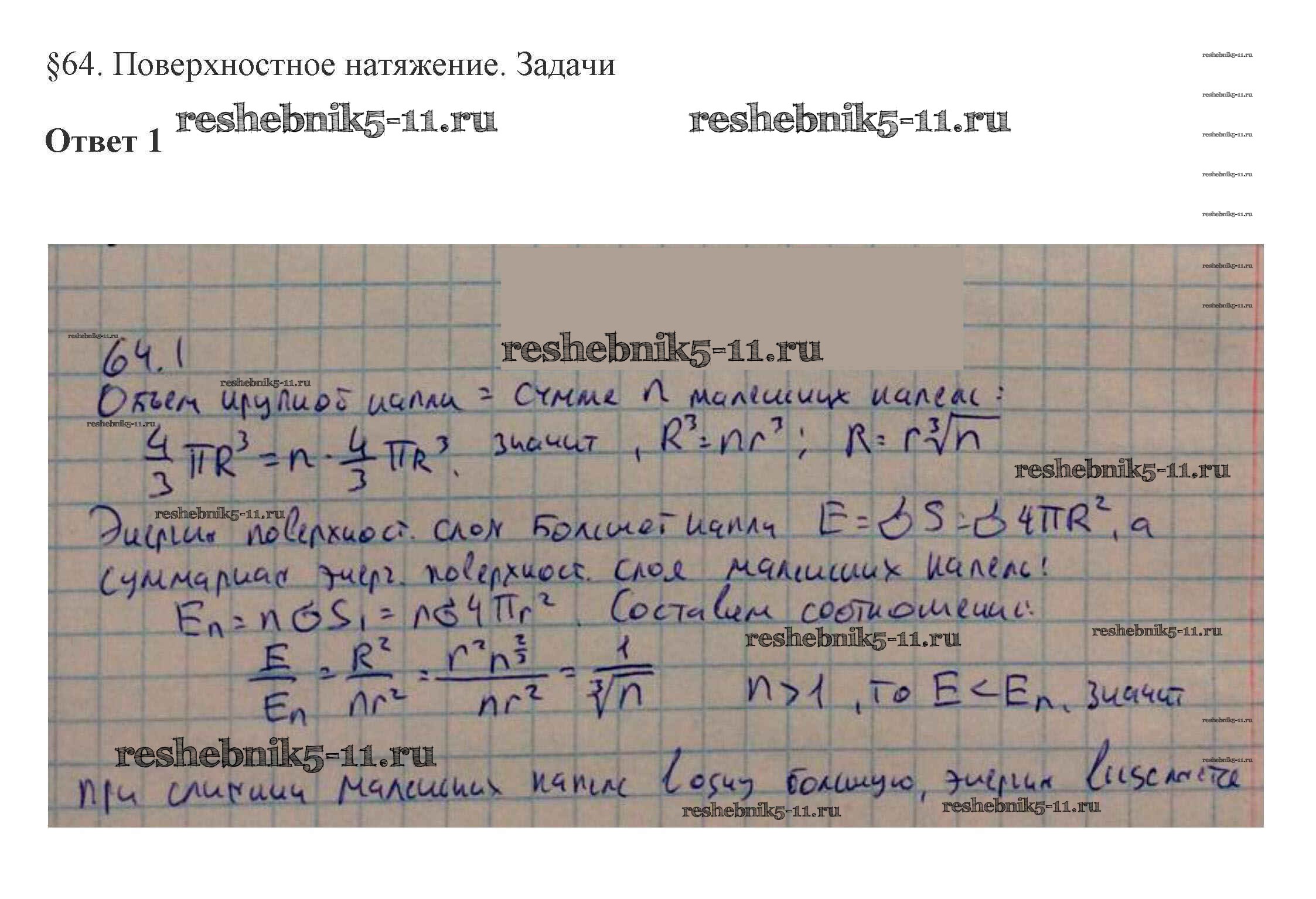 Готовая домашняя работа с ответами по Физике за 10 класс Касьянов Учебник Дрофа 2018 ФГОС - 64. Поверхностное натяжение 1