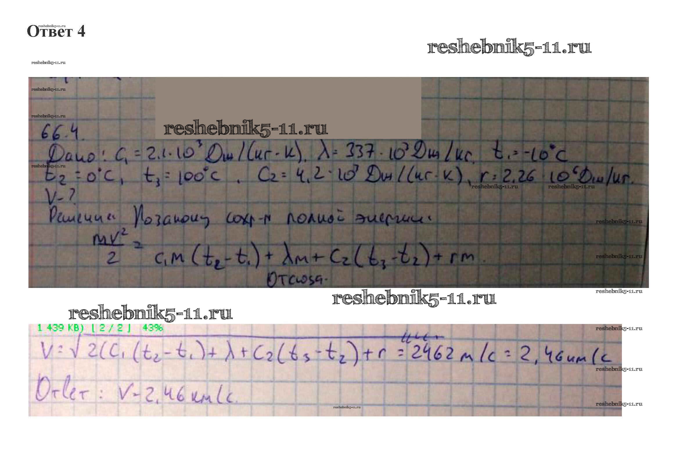Готовая домашняя работа с ответами по Физике за 10 класс Касьянов Учебник Дрофа 2018 ФГОС - 66. Кристаллизация и плавление твердых тел 4