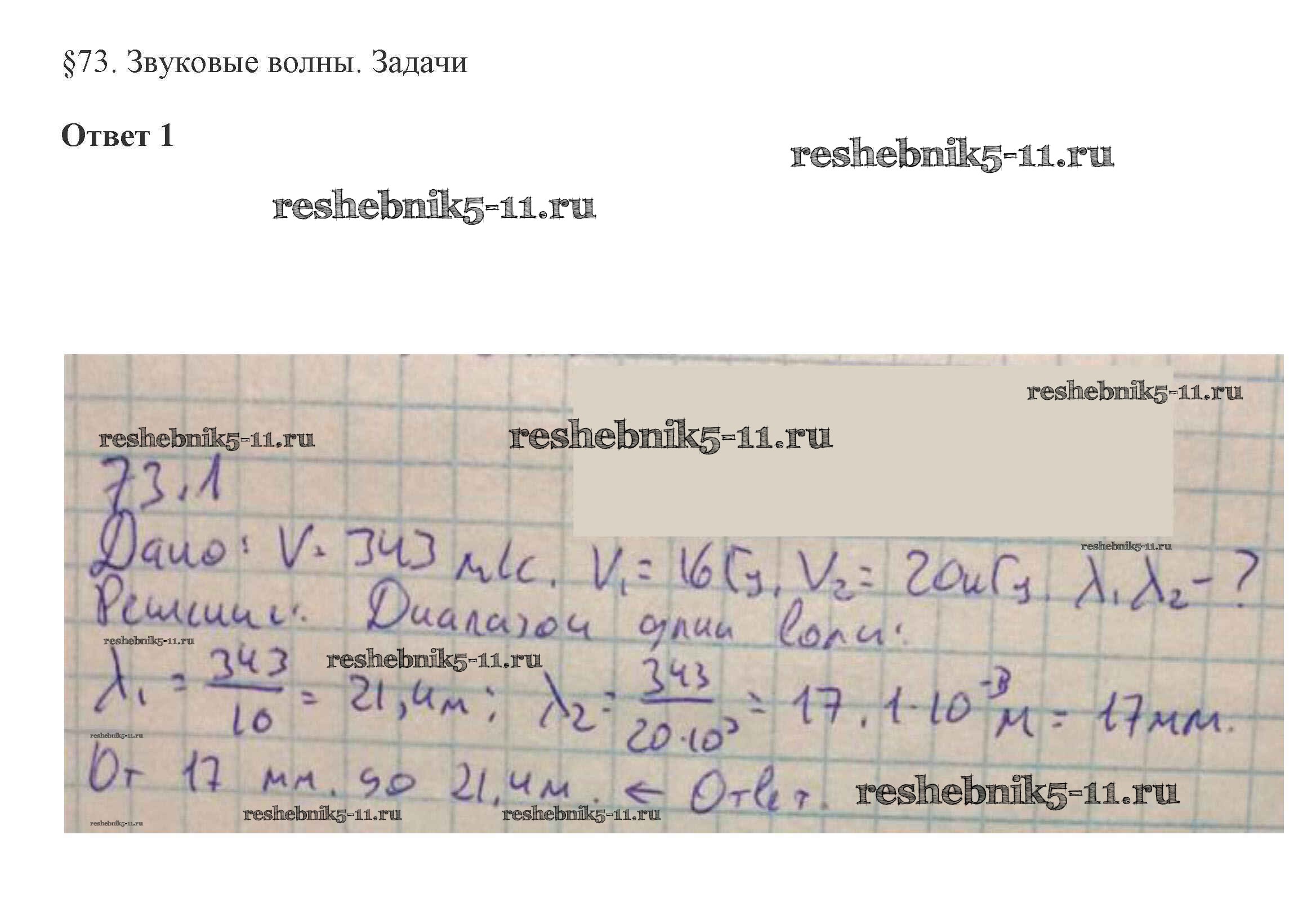Готовая домашняя работа с ответами по Физике за 10 класс Касьянов Учебник Дрофа 2018 ФГОС - 73. Звуковые волны 1